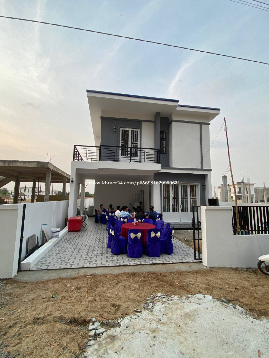 ផ្ទះវីឡាទោល ដី 10m x 20m ផ្ទះ 8.25m x 11m ផ្លូវរដ្ឋ 12ម៉ែត្រ បែរទិស ត្បូង បន្ទប់គេង 3 បន្ទប់ទឹក 3 កន្លែងទទួលភ្ញៀវ 1 ចង្រ្កានបាយ 1 ឃ្លាំង 1