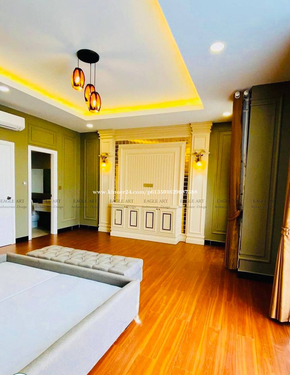 -ផ្ទះ Decor ខាងក្នុងស្អាតប្រណិតគ្រប់បន្ទប់ គ្រប់កន្លែង មានបំពាក់វាំងននយ៉ាងស្រស់ស្អាត និងលំអភ្លើងពណ៌តាមជណ្តើរ និងពិដានហើយស្រាប់ -មាន ៣ បន្ទប់គេង, បន្ទប់ធ្វើការធ្វើការ ០១, បន្ទប់ដាក់សម្លៀកបំពាក់និងគ្រឿងអលង្ការ ០១ -មាន Mini Bar មួយ -មានថែមជូនសម្ភារក្នុងផ្ទះដូចជា៖ គ្រែ និងពូកមានស្រាប់, ទូរដាក់ឥវ៉ាន់ និងទូរដាក់សម្លៀកបំពាក់ ម៉ាស៊ីនត្រជាក់៦ គ្រឿង, តុបាយវែងមួយ និងកៅអី១០, និងសម្ភារមួយចំនួនទៀត -មានផ្ទះបាយធំទូលាយ និងមានបន្ទប់ទឹកទាំងអស់៦ នៅជាន់ផ្ទាល់ដីមានបន្ទប់ទឹក២ ដោយឡែក -ទីតាំងចតឡានយ៉ាងធំទូលាយ -សាកសមបំផុតសម្រាប់ការរស់នៅបែបសុីវិល័យ សុវត្ថិភាព ផាសុខភាព និង ពោរពេញទៅដោយគម្រោង ធំៗ ផ្សារ និង ខុនដូនៅជុំវិញតំបន់ (ជិតបុរីប៉េងហួត បុរីអ័រគីដេ-ល-)។ សម្រាប់ព័ត៌មានបន្ថែមសូមទំនាក់ទំនងទៅកាន់លេខ 0979088xxxClick To Call (Telegram) ឬ 0966161xxxClick To Call ******Twin Villa for rent in borey The MekongRoyal (6A) Chroy Chongva * Land Size: 9m x 20m * House Size: 6m x 12m * Front 6m , Back 2m and sided 3m * 6 Bathrooms and 5 Bedrooms with all decoration * Facing: South. * Materials Offer: 6Air-Conditioners, bed, closet, refrigerator, table and curtain * It is nice place for living, security and good environment * For more detail please contact to: 📲0979088xxxClick To Call (Telegram) 📲0966161xxxClick To Call
