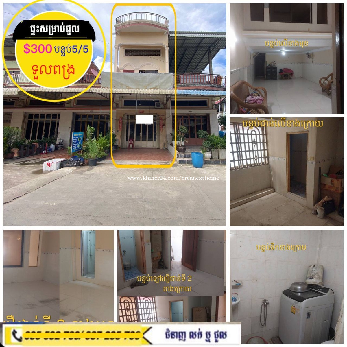 #ផ្ទះសម្រាប់ជួលមានសម្ភារះ ស្នាក់នៅទួលពង្រ ផ្ទះក្នុងបុរី -តំលៃជួល $300 👉សម្ភារះរួមមាន: -គ្រែពូក1ឈុត -ម៉ាសុីនត្រជាក់3គ្រឿង -កង្កា5គ្រឿង -ម៉ាសុីនបោក1 -តុបាយ -បន្ទប់គេង5, បន្ទប់ទឹក5 -ខ្នាតផ្ទ:4.10ឞ x 14ម -មុខ5ម, ក្រោយ1.50ឞ 👉ទឹករដ្ឋ ភ្លើងរដ្ឋ ស្ងប់ស្ងាត់ល្អ សំរាប់ការរស់នៅ ☎️ 070418xxxClick To Call | 078418xxxClick To Call Telegram : https://t.me/Sienghai 1. SIENGHAI Channel : https://t.me/sienghaioucrea 2. HOUSE SALE : https://t.me/creasale 3. HOUSE RENT : https://t.me/crearent 4. Condo & Apartment : https://t.me/creaozone 5. Commercial Bulding : https://t.me/creabizzone 6. LAND : https://t.me/CREAAILAND