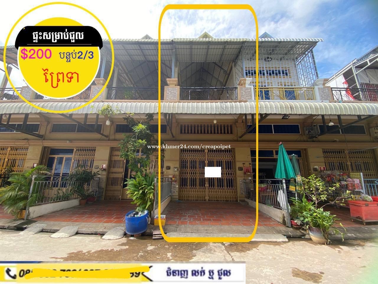 #ផ្ទះសម្រាប់ជួល ក្នុងបុរីផ្លូវបេតុងស្អាតព្រៃទា -តំលៃជួល$200 -បន្ទប់គេង2,បន្ទប់ទឹក3 -ខ្នាតផ្ទះ4.2ឞ x 16ឞ - មុខ 4ម ក្រោយ 1.50ឞ ☎️ 070418xxxClick To Call | 078418xxxClick To Call Telegram : https://t.me/Sienghai 1. SIENGHAI Channel : https://t.me/sienghaioucrea 2. HOUSE SALE : https://t.me/creasale 3. HOUSE RENT : https://t.me/crearent 4. Condo & Apartment : https://t.me/creaozone 5. Commercial Bulding : https://t.me/creabizzone 6. LAND : https://t.me/CREAAILAND