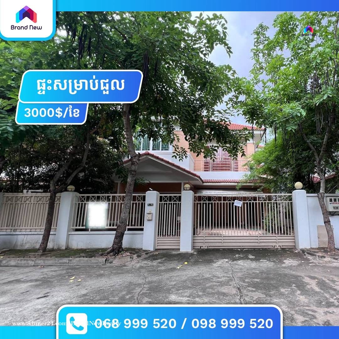 ផ្ទះសម្រាប់ជួល នៅបុរីឧទ្យានបាសាក់ |House for Rent at Bassac Garden city - តម្លៃជួល | Price: $3,000/ខែ ចរចា - ទំហំផ្ទះ | House size: 9.5m X 9.5m - បន្ទប់ការិយាល័យ | Office : 1 - បន្ទប់គេង | Bedrooms : 3 - បន្ទប់ទឹក | Bathrooms : 5 - សម្ភារះពេញ | Full Furniture - កុងត្រា 1ឆ្នាំ កក់2 បង់1 巴萨克花园城房屋出租 - 租金 | 价格:3,000 美元/月(可议价) - 房屋面积 | 房屋面积:9.5 米 x 9.5 米 - 办公室 | 办公室:1 间 - 卧室 | 卧室:3 间 - 浴室 | 浴室:5 间 - 家具齐全 | 家具齐全 - 一年租约,押金 2 个月,首付 1 个月
