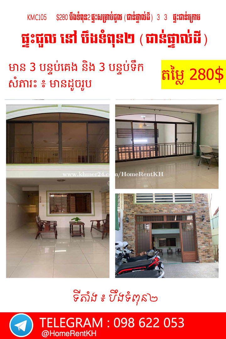🏠 ផ្ទះសម្រាប់ជួល ជាន់ផ្ទាល់ដី នៅបឹងទំពុន២ Home for rent at BOENG TUMPUN2 • តម្លៃជួល. Price : 280$ • ទីតាំង Location : បឹងទំពុន២ , ខណ្ឌមានជ័យ • បន្ទប់គេង Bedroom : 3 • បន្ទប់ទឹក. Bathroom : 3 👉 ផ្ទះស្អាត : មានផាសុខភាព 👉 សំភារះក្នុងផ្ទះ : គ្មាន 👇ឆាតចូលក្នុងប្រអប់សារតេលេក្រាម ងាយស្រួលផ្ងើររូបភាពនឹងវីដេអូនជូន 098 622 053 ឬ @HomeRentKH 👉 https://t.me/HomeRentKH 👇ចូលក្រុម តាមដាន ពត៍មាន ផ្ទះជួល បន្ទប់ជួល នឹងខុនដូ អាផាតមិន ជាច្រើនទៀត 👉 Channel Property 👉 https://t.me/HomeRentService #ផ្ទះជួល #បន្ទប់ជួល #អាគារជួល #ខុនដូជួល #homeforrent #houseforrent #rent #rentkh #rentcambodia #condoforrent #appartmentforrent #ផ្ទះអាជីវកម្មសម្រាប់ជួល #ផ្ទះជួលសម្រាប់រកស៊ី #បន្ទប់ជួលតម្លៃធូរថ្លៃ #ផ្ទះជួលធូរថ្លៃ #ផ្ទះជួលសម្រាប់ស្នាក់នៅ #renthouse #renthome #ផ្ទះអាជីវកម្ម #ផ្ទះសម្រាប់ជួល #houserenting #househunting #ជួល #ជួលបន្ទប់ #ជួលផ្ទះ #វីឡាទោលសម្រាប់ជួល #ស្វែងរកផ្ទះ #ផ្ទះជួលសម្រាប់ស្នាក់នៅ #ការិយាល័យសម្រាប់ជួល #ឃ្លាំងជួល #វីឡាទោលសម្រាប់ជួល #សម្រាប់ជួល #KMC105