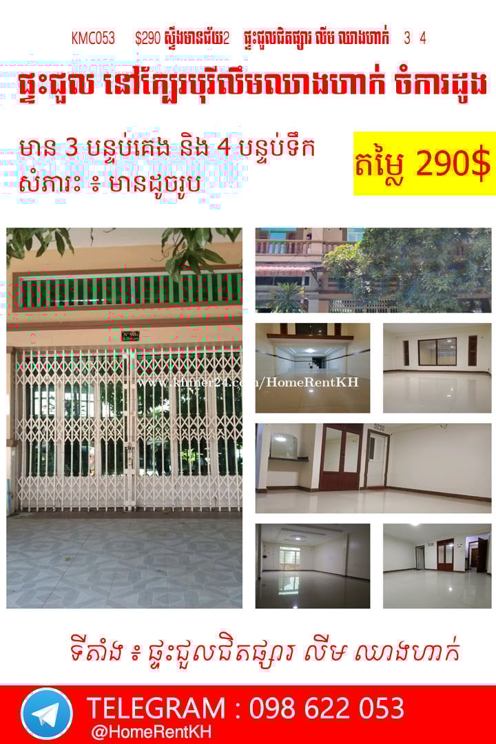 🏠 ផ្ទះសម្រាប់ជួល នៅ ជិតផ្សារ លីម ឈាងហាក់ Home for rent at LEM CHENG HACK MARKET • តម្លៃជួល. Price : 290$ • ទីតាំង Location : ស្ទឹងមានជ័យ , ខណ្ឌមានជ័យ • បន្ទប់គេង Bedroom : 3 • បន្ទប់ទឹក. Bathroom : 4 👉 ផ្ទះស្អាត : មានផាសុខភាព 👉 សំភារះក្នុងផ្ទះ : គ្មាន 👇ឆាតចូលក្នុងប្រអប់សារតេលេក្រាម ងាយស្រួលផ្ងើររូបភាពនឹងវីដេអូនជូន 098 622 053 ឬ @HomeRentKH 👉 https://t.me/HomeRentKH 👇ចូលក្រុម តាមដាន ពត៍មាន ផ្ទះជួល បន្ទប់ជួល នឹងខុនដូ អាផាតមិន ជាច្រើនទៀត 👉 Channel Property 👉 https://t.me/HomeRentService #ផ្ទះជួល #បន្ទប់ជួល #អាគារជួល #ខុនដូជួល #homeforrent #houseforrent #rent #rentkh #rentcambodia #condoforrent #appartmentforrent #ផ្ទះអាជីវកម្មសម្រាប់ជួល #ផ្ទះជួលសម្រាប់រកស៊ី #បន្ទប់ជួលតម្លៃធូរថ្លៃ #ផ្ទះជួលធូរថ្លៃ #ផ្ទះជួលសម្រាប់ស្នាក់នៅ #renthouse #renthome #ផ្ទះអាជីវកម្ម #ផ្ទះសម្រាប់ជួល #houserenting #househunting #ជួល #ជួលបន្ទប់ #ជួលផ្ទះ #វីឡាទោលសម្រាប់ជួល #ស្វែងរកផ្ទះ #ផ្ទះជួលសម្រាប់ស្នាក់នៅ #ការិយាល័យសម្រាប់ជួល #ឃ្លាំងជួល #វីឡាទោលសម្រាប់ជួល #សម្រាប់ជួល #KMC053