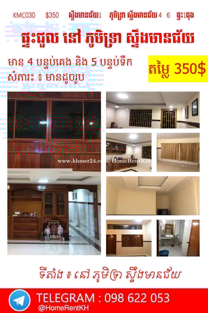 🏠 ផ្ទះសម្រាប់ជួល នៅ ភូមិទ្រា ស្ទឹងមានជ័យ Home for rent at STENG MEAN CHEY • តម្លៃជួល. Price : 350$ • ទីតាំង Location : ស្ទឹងមានជ័យ , ខណ្ឌមានជ័យ • បន្ទប់គេង Bedroom : 4 • បន្ទប់ទឹក. Bathroom : 6 👉 ផ្ទះស្អាត : មានផាសុខភាព 👉 សំភារះក្នុងផ្ទះ : គ្មាន 👇ឆាតចូលក្នុងប្រអប់សារតេលេក្រាម ងាយស្រួលផ្ងើររូបភាពនឹងវីដេអូនជូន 098 622 053 ឬ @HomeRentKH 👉 https://t.me/HomeRentKH 👇ចូលក្រុម តាមដាន ពត៍មាន ផ្ទះជួល បន្ទប់ជួល នឹងខុនដូ អាផាតមិន ជាច្រើនទៀត 👉 Channel Property 👉 https://t.me/HomeRentService #ផ្ទះជួល #បន្ទប់ជួល #អាគារជួល #ខុនដូជួល #homeforrent #houseforrent #rent #rentkh #rentcambodia #condoforrent #appartmentforrent #ផ្ទះអាជីវកម្មសម្រាប់ជួល #ផ្ទះជួលសម្រាប់រកស៊ី #បន្ទប់ជួលតម្លៃធូរថ្លៃ #ផ្ទះជួលធូរថ្លៃ #ផ្ទះជួលសម្រាប់ស្នាក់នៅ #renthouse #renthome #ផ្ទះអាជីវកម្ម #ផ្ទះសម្រាប់ជួល #houserenting #househunting #ជួល #ជួលបន្ទប់ #ជួលផ្ទះ #វីឡាទោលសម្រាប់ជួល #ស្វែងរកផ្ទះ #ផ្ទះជួលសម្រាប់ស្នាក់នៅ #ការិយាល័យសម្រាប់ជួល #ឃ្លាំងជួល #វីឡាទោលសម្រាប់ជួល #សម្រាប់ជួល #KMC030