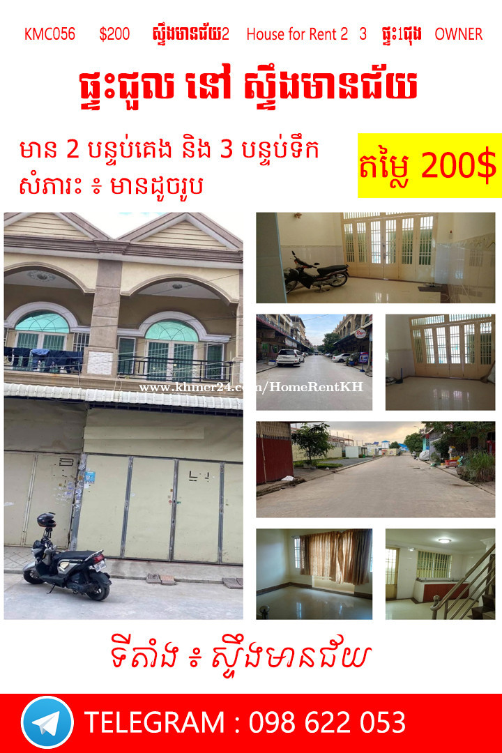🏠 ផ្ទះសម្រាប់ជួល នៅ ស្ទឹងមានជ័យ Home for rent at STENG MEAN CHEY • តម្លៃជួល. Price : 200$ • ទីតាំង Location : ស្ទឹងមានជ័យ , ខណ្ឌមានជ័យ • បន្ទប់គេង Bedroom : 2 • បន្ទប់ទឹក. Bathroom : 3 👉 ផ្ទះស្អាត : មានផាសុខភាព 👉 សំភារះក្នុងផ្ទះ : គ្មាន 👇ឆាតចូលក្នុងប្រអប់សារតេលេក្រាម ងាយស្រួលផ្ងើររូបភាពនឹងវីដេអូនជូន 098 622 053 ឬ 👉 https://t.me/HomeRentKH 👇ចូលក្រុម តាមដាន ពត៍មាន ផ្ទះជួល បន្ទប់ជួល នឹងខុនដូ អាផាតមិន ជាច្រើនទៀត 👉 Channel Property 👉 https://t.me/HomeRentService #ផ្ទះជួល #បន្ទប់ជួល #អាគារជួល #ខុនដូជួល #homeforrent #houseforrent #rent #rentkh #rentcambodia #condoforrent #appartmentforrent #ផ្ទះអាជីវកម្មសម្រាប់ជួល #ផ្ទះជួលសម្រាប់រកស៊ី #បន្ទប់ជួលតម្លៃធូរថ្លៃ #ផ្ទះជួលធូរថ្លៃ #ផ្ទះជួលសម្រាប់ស្នាក់នៅ #renthouse #renthome #ផ្ទះអាជីវកម្ម #ផ្ទះសម្រាប់ជួល #houserenting #househunting #ជួល #ជួលបន្ទប់ #ជួលផ្ទះ #វីឡាទោលសម្រាប់ជួល #ស្វែងរកផ្ទះ #ផ្ទះជួលសម្រាប់ស្នាក់នៅ #ការិយាល័យសម្រាប់ជួល #ឃ្លាំងជួល #វីឡាទោលសម្រាប់ជួល #សម្រាប់ជួល #SMC056