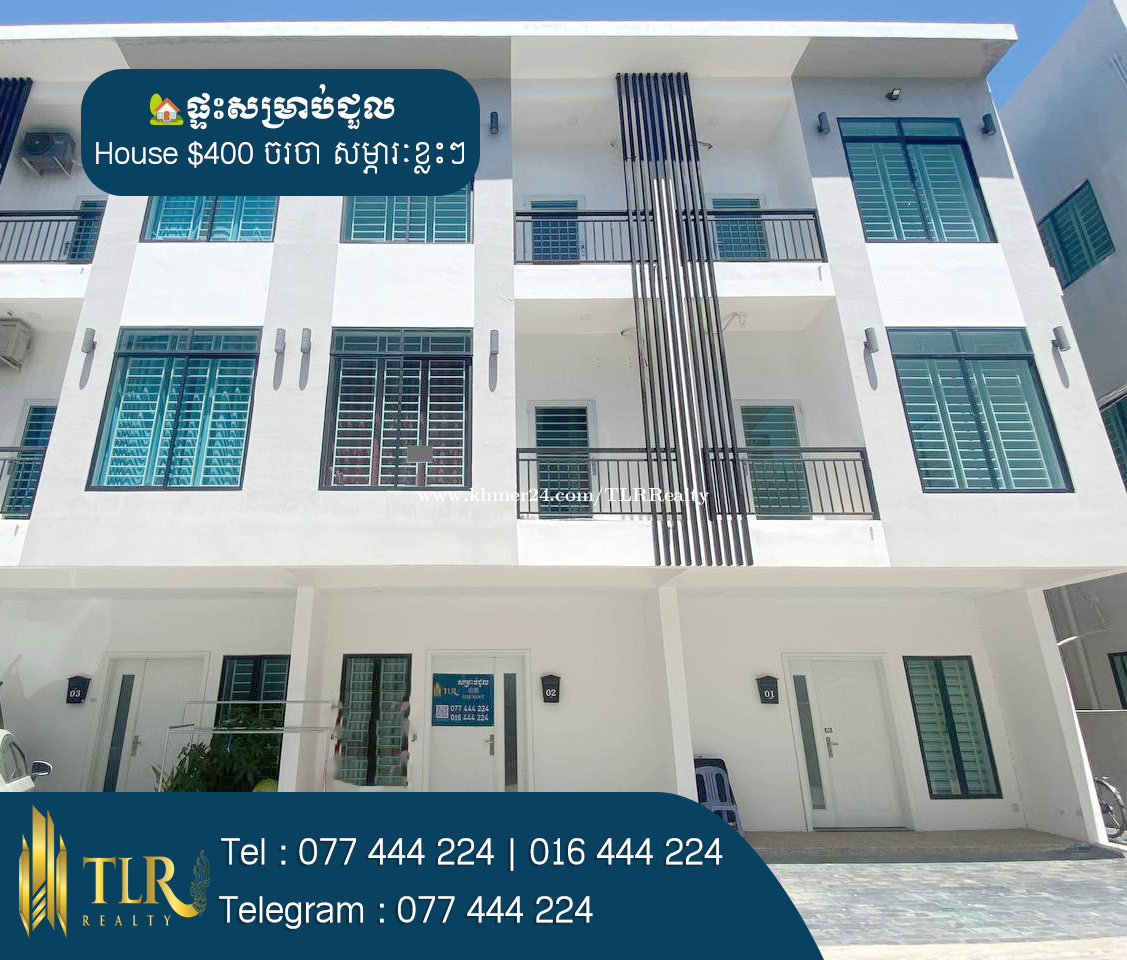 🏡ផ្ទះសម្រាប់ជួល | House for Rent 💲តម្លៃជួល | Price Rent : 400$ ចរចា - សម្ភារៈ | Furniture : Some - ទំហំផ្ទះ | House size : 4m x 12m - ទំហំដី | Land size : 4m x 19m - បន្ទប់គេង | Bedroom : 3 - បន្ទប់ទឹក | Bathroom : 4 - ផ្ទះបាយ | Kitchen : 1 - បន្ទប់ទទួលភ្ញៀវ | Livingroom : 1 - ផ្ទះបែរទៅខាងកើត | Facing to East 📍ទីតាំងស្ថិតនៅ ក្រោយសាលាបឋមសិក្សារព្រែកឯង សង្កាត់វាលស្បូវ ខណ្ឌច្បារអំពៅ រាជធានីភ្នំពេញ | Location sangkat Veal Sbov Khan Chbar AumPov Phnom Penh. # អត្តលេខអាជ្ញាប័ណ្ណ : E-24-449 📞 Cellcard : 077444xxxClick To Call 📞 Smart : 016444xxxClick To Call 📞 Metfone : 066444xxxClick To Call 📱 Telegram : 077444xxxClick To Call 📱 Channel telegram : https://t.me/RithyTLR