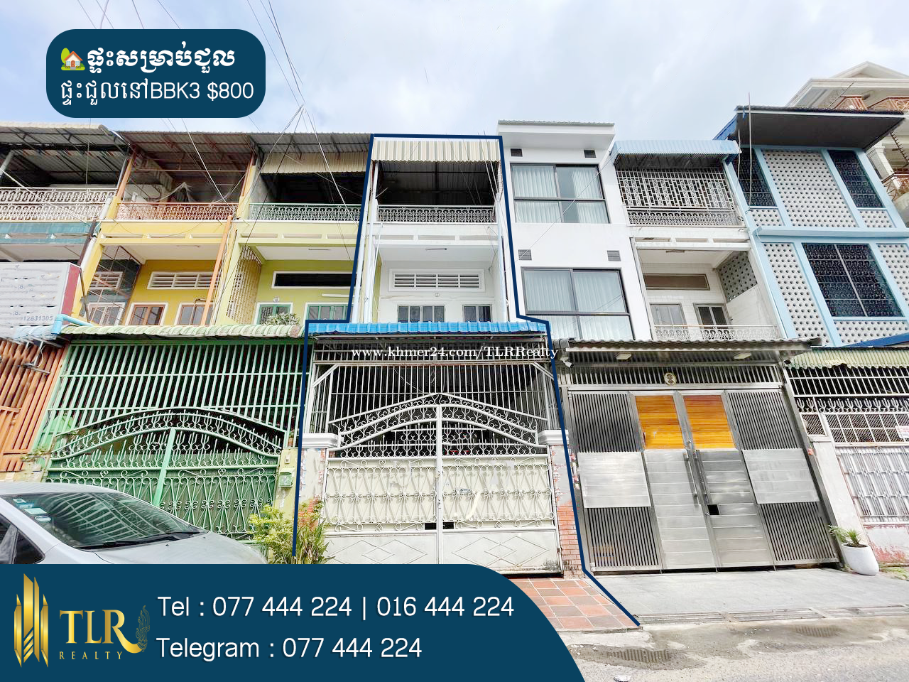 🏡ផ្ទះសម្រាប់ជួល | House for Rent 💲តម្លៃ | Price Rent : $800 ចរចា - សម្ភារៈ | Furniture : Some - ទំហំផ្ទះ | House size : 4.2m x 16m - ទំហំដី | Land Size : 4.2m x 25m - បន្ទប់គេង | Bedroom : 4 - បន្ទប់ទឹក | Bathroom : 5 - ផ្ទះបាយ | Kitchen : 1 - ផ្ទះបែរទៅខាងត្បូង | Facing to South 📍ទីតាំងស្ថិតនៅក្នុង សង្កាត់បឹងកេងកងទី៣ ខណ្ឌបឹងកេងកង រាជធានីភ្នំពេញ | Location in Phnom Penh. # អត្តលេខអាជ្ញាប័ណ្ណ : E-24-449 📞 Cellcard : 077444xxxClick To Call 📞 Smart : 016444xxxClick To Call 📞 Metfone : 066444xxxClick To Call 📱 Telegram : 077444xxxClick To Call 📱 Channel telegram : https://t.me/RithyTLR