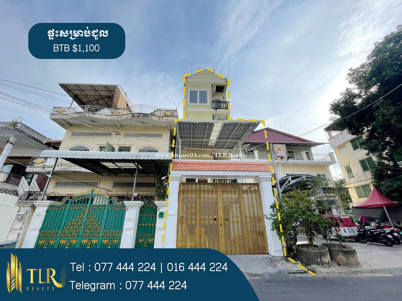 🏠ផ្ទះសម្រាប់ជួល | House for Rent 💲តម្លៃជួល | Price Rent : $1,100 - សម្ភារៈ | Furniture : Some - ទំហំផ្ទះ | House Size : 4m x 25m - បន្ទប់គេង | Bedroom : 7 - បន្ទប់ទឹក | Bathroom : 8 - ផ្ទះបែរទៅខាងជើង | Facing to North 📍ទីតាំងស្ថិតនៅក្នុង សង្កាត់បឹងត្របែក ខណ្ឌចំការមន រាជធានីភ្នំពេញ | Location in Phnom Penh. # អត្តលេខអាជ្ញាប័ណ្ណ : E-24-449 📞 Cellcard : 077444xxxClick To Call 📞 Smart : 016444xxxClick To Call 📞 Metfone : 066444xxxClick To Call 📱 Telegram : 077444xxxClick To Call 📱 Channel telegram : https://t.me/RithyTLR