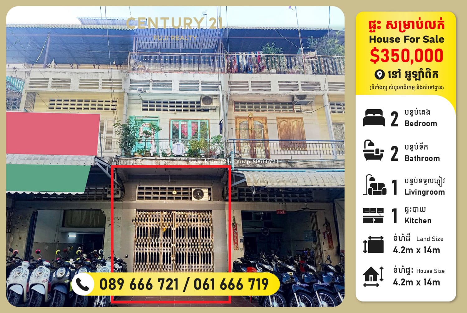 ផ្ទះសម្រាប់លក់ អូឡាំពិច - តម្លៃ 350,000$ - ទំហំផ្ទះ 4.2x14 - បន្ទប់គេង: 2 / បន្ទប់ទឹ: 2 - ប្លង់រឹង សម្រាប់ព័ត៌មានបន្ថែមទំនាក់ទំនង : - Telegram : https://t.me/epheakdey_fujirealty - Hotline: 098675xxxClick To Call / 017946xxxClick To Call / 061666xxxClick To Call License No.: E-14-160 #Sale #Shophouse #Olympic #urgent