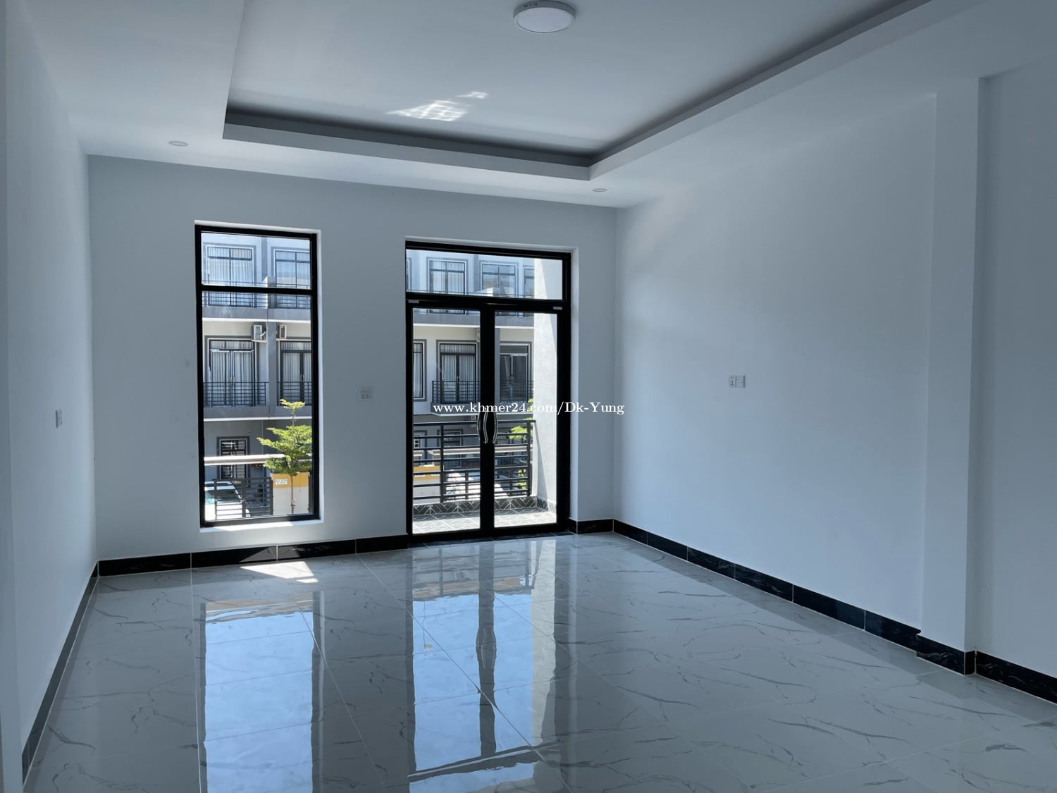 ផ្លូវមុខផ្ទះ១១ម៉ែត្រ មុខផ្ទះ៧ម៉ែត្រមានទ្វារបង ខាងក្រោយផ្ទះសល់ដី២ម៉ែត្រកន្លះ មានរបងស្រាប់។