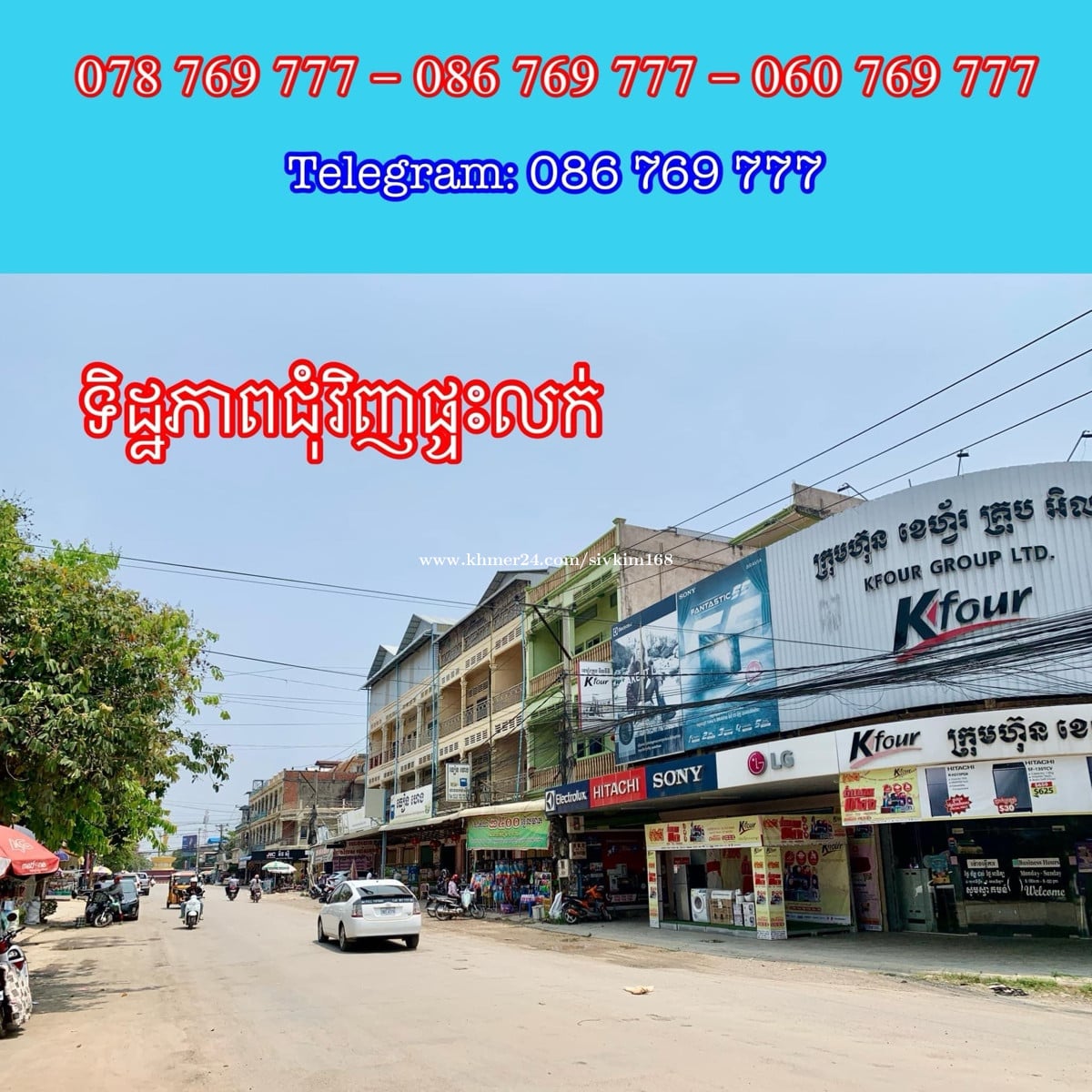 ផ្ទះអាជីវកម្មកណ្តាលក្រុងបាត់ដំបងងាយស្រួលរកសុី សំរាប់ព័ត៌មានលំអិតសូមទាក់ទងតាមលេខខាងក្រោម ទំហំ4.5x17ទីតាំងនៅលើផ្លូវធំ 100mពីផ្សារបឹងឈូក ផ្ទះអាជីវកម្មកណ្តាលក្រុងបាត់ដំបង អាចប្តូរជាមួយឡានបាន 078769xxxClick To Call - 086769xxxClick To Call - 060769xxxClick To Call Telegram:https://t.me/chhunneangkhmer168
