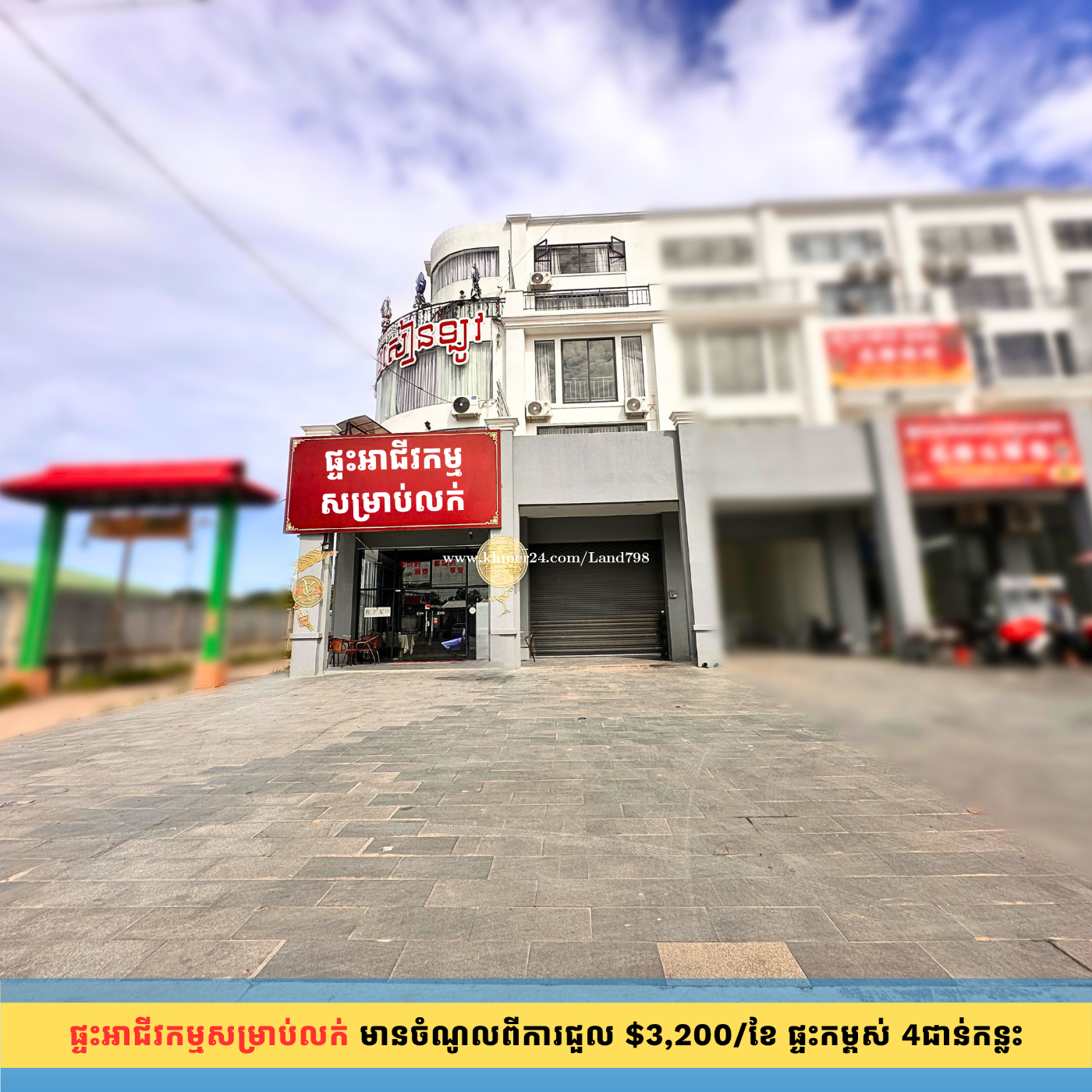 🏡 ផ្ទះអាជីវកម្មកម្ពស់ 4ជាន់កន្លះ ជាប់ផ្លូវកែងវិថី ឧកញ៉ា ម៉ុងឫទ្ធី មានចំណូលប្រចាំខែ $3,200/ខែ ត្រឹមតែ 200m ពីផ្សារបឹងបៃតង់ 📺វីដេអូនិយាយក្នុង YouTube ឆាប់ៗនេះ..! * កម្មសិទ្ធិប្លង់ រឹង (ចរចារត្រូវកាត់ប្លង់ជូន) . ទំហំដី 10,5m x 30m . ទំហំផ្ទះ 10m-18m កម្ពស់ 4ជាន់កន្លះ (ទិសត្បូង) . សល់ខាងមុខ 12,5m និងសល់ខាងក្រោយ 2m . មានបន្ទប់គេងសរុប 16 បន្ទប់ទឹកសរុប 14 . ប្រើប្រព័ន្ធភ្លើងអំពែធំហើយស្រាប់ > ទីតាំងនៅ ភូមិតច្រេស សង្កាត់គោកឃ្លាង ខណ្ឌសែនសុខ រាជធានីភ្នំពេញ។ ------------------------ * តម្លៃ $950,000 ចរចា ------------------------ + យើងខ្ញុំមានសេវាធនាគារល្អៗជូន បើសិនជាអតិថិជនត្រូវការ។ 💁សំរាប់ព័ត៌មានលំអិតផ្សេងៗ៖ 📲0967000xxxClick To Call/Smart 📲092765xxxClick To Call /Cellcard 📲098765xxxClick To Call /Smart -Telegram ផ្ទាល់ខ្លួន https://t.me/phanna798 -Telegram Channel https://t.me/Land798 -Facebook page https://web.facebook.com/Land798