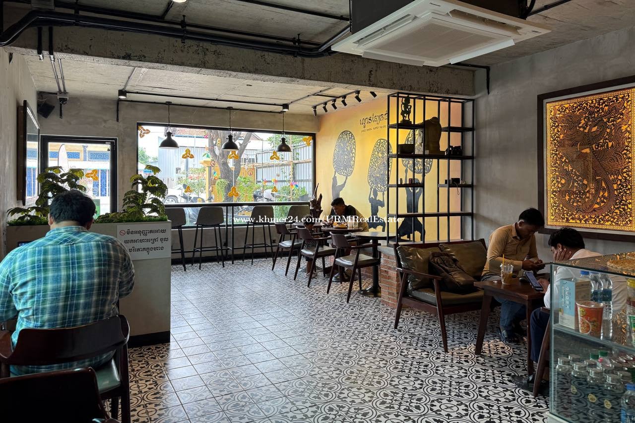ផ្ទះអាជីវកម្មកែងសំរាប់លក់នៅលើផ្លូវធំ ខាងអរិយក្សត្រ Coffee shop for sale along main road at Arey Ka'at - តម្លៃលក់ | Selling Price: $350,000 (ចចារ) - ទំហំដី | Land Size: 14m x 25,20m = 352.80m2 - ២ បន្ទប់ | ១ បន្ទប់ទឹក | 2 Bedroom, 1 Bathroom - ២ ជាន់ | Floor 2 - នៅលើផ្លូវធំ | located on main road - ចំណូល ១ ខែ ខ្ទង់ $២,០០០ | Income $2,000 per month _______________________________ ☎️ 010460xxxClick To Call