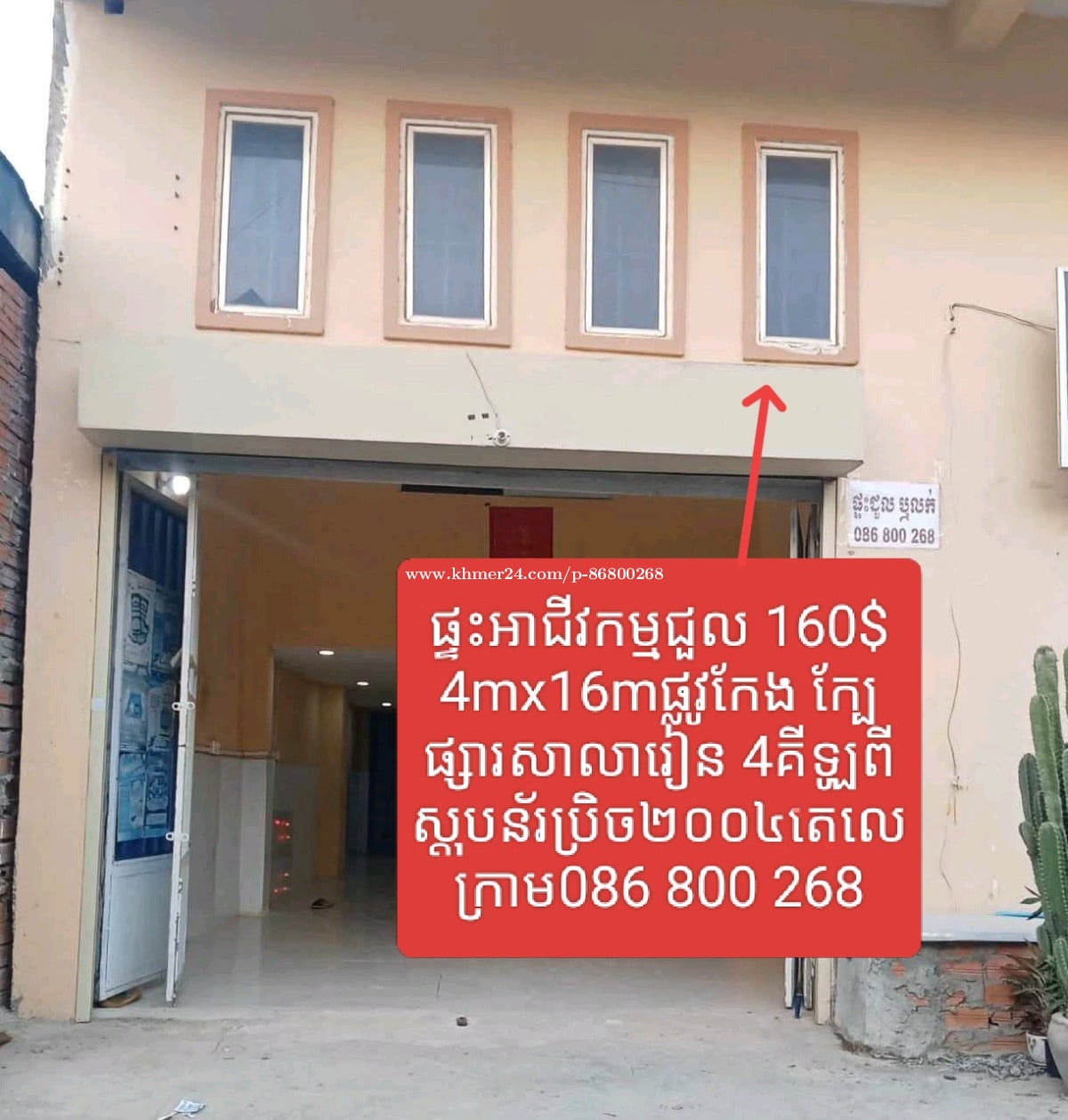 ផ្ទះអាជីវកម្ម4mx16mជាន់ក្រោមសម្រាប់ជួល ២បន្ទប់គេង ៣បន្ទប់ទឹក 200mពីផ្សារចាន់ធូ និង600mពីផ្សារកាណាស៊ីតធីផ្លូវវេងស្រេងនិង 4kmពីស្តុបន័រប្រិចផ្លូវ២០០៤ ជួល180$ telegram 086800xxxClick To Call