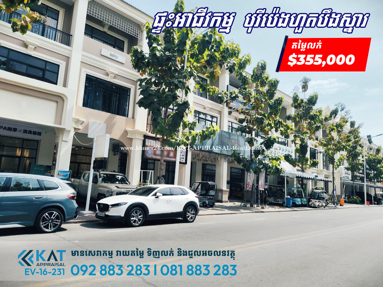 ផ្ទះអាជីវកម្មម៉ាជេស្ទីកសម្រាប់លក់ | Shophouse Majestic For Sale - គម្រោងបុរីប៉េងហួតបឹងស្នោ ផ្លូវជាតិលេខ ១ Capital One (C-01) - តម្លៃលក់ | Sale Price: $355,000 - ទំហំដី | Land Size: 4.5m x 27m - ទំហំផ្ទះ | House Size: 4.5m x 16m - បន្ទប់គេង | Bedroom: 4 - បន្ទប់ទឹក | Bedroom: 5 - ផ្ទេរឈ្មោះត្រឹមបុរី | Borey Title - ទីតាំង | Location: បុរីប៉េងហួតបឹងស្នោរ, សង្កាត់វាលស្បូវ , ខណ្ឌច្បារអំពៅ, ភ្នំពេញ។ Tel: 092883xxxClick To Call l 081883xxxClick To Call Telegram Chat : https://t.me/katappraisalsupport Telegram Channel : https://t.me/KAT_APPRAISAL