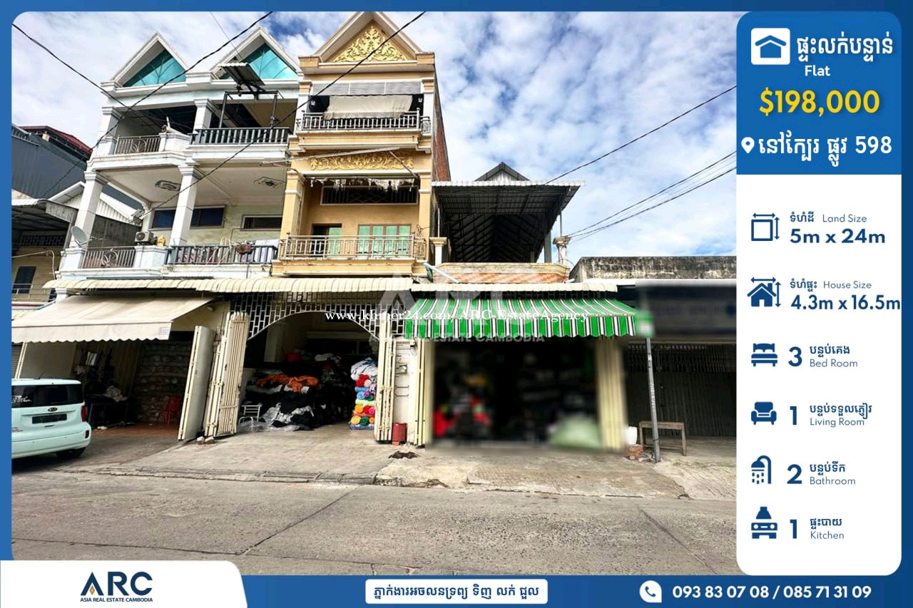 #ផ្ទះអាជីវកម្មដាក់លក់បន្ទាន់នៅក្បែរកាំកូសុីធីផ្លូវ598 🔹 តម្លៃលក់ក្រោមទីផ្សារ : $198,000 (ចរចាម្ចាស់ផ្ទាល់) 🔹 កាត់ឈ្មោះប្លង់រឹងជូន 🔹 ទំហំដី : 5m x 24m 🔹 ទំហំផ្ទះ : 4.3m x 16.5m 🔹 បន្ទប់គេង : 03 បន្ទប់ទឹក : 02 📍 ទីតាំងសង្កាត់ទួលសង្កែទី២ ,ខណ្ឌឬស្សីកែវ ,រាជធានីភ្នំពេញ សម្រាប់ពត៏មានលម្អិតសូមទំនាក់ទំនងមកក្រុមការងារ 085713xxxClick To Call / 093830xxxClick To Call / 0978899xxxClick To Call Chat to Telegram Agent https://t.me/sonsela14 Channel Telegram https://t.me/ARCKhanResseykeo 👉 អាជ្ញាប័ណ្ណ៖ EV-08-069