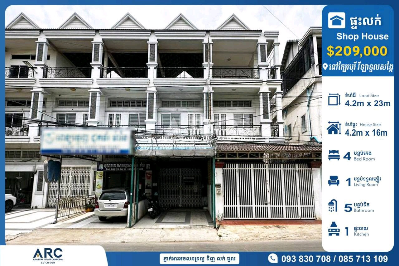 #Shop house For Sale Near Borey Villa Toul Sangkae #ផ្ទះអាជីវកម្មដាក់លក់បន្ទាន់នៅក្បែរបុរីវីឡាទួលសង្កែ ខណ្ឌឬស្សីកែវ 🔹 តម្លៃលក់ : $209,000 ( ចរចម្ចាស់ផ្ទាល់ ) 🔹 កាត់ឈ្មោះប្លង់រឹងជូន 🔹 ទំហំផ្ទះ : 4.2m x 16m 🔹 ទំហំដី : 4.2m x 23m 🔹 បន្ទប់គេង : 04 បន្ទប់ទឹក : 05 📍ទីតាំងស្ថិតនៅក្បែរទីលានវាយកូនហ្គោល ( City Golf Club ) ខណ្ឌឬស្សីកែវ ,រាជធានីភ្នំពេញ សម្រាប់ពត៏មានលម្អិតសូមទំនាក់ទំនងមកក្រុមការងារ 085713xxxClick To Call / 093830xxxClick To Call / 0978899xxxClick To Call Chat to Telegram Agent https://t.me/sonsela14 Channel Telegram https://t.me/ARCKhanResseykeo 👉 អាជ្ញាប័ណ្ណ៖ EV-08-069