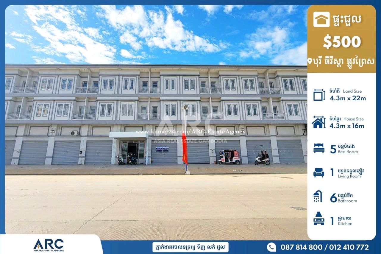🏘️ ផ្ទះអាជីវកម្ម(SH) សម្រាប់ជួលនៅបុរី ធីវីស្តា (គម្រោង៥) ផ្លូវព្រៃស 👉តម្លៃ: 500$(ចរចា) *ទំហំផ្ទះ House Size: 4.3m x 16m *ទំហំដី Land Size: 4.3m x 23m *បន្ទប់គេង Bedroom: 5 *បន្ទប់ទឹក Bathroom: 6 👉ផ្ទះថ្មីស្អាត អាចប្រកបអាជីវកម្មបាន ៥នាទីពីមន្ទីរពេទ្យហ្លូងម៉ែ មានសន្តិសុខ២៤ម៉ោង មានផ្សារ សាលារៀន មន្ទីរពេទ្យ..... 📍 នៅសង្កាត់ព្រៃស ខណ្ឌដង្កោ រាជធានីភ្នំពេញ Tel: 087814xxxClick To Call / 012410xxxClick To Call/ 070410xxxClick To Call Telegram http://t.me/@Vebol087 Channel Telegram https://t.me/ARCDangkorVebol Channel telegram: https://t.me/AsiaRealEstateCambodia #ផ្ទះលក់បន្ទាន់ខ្លាំង #villaforsale #KhanDangkao #khanmeanchey 👉អាជ្ញាបណ្ណ:EV-08-069