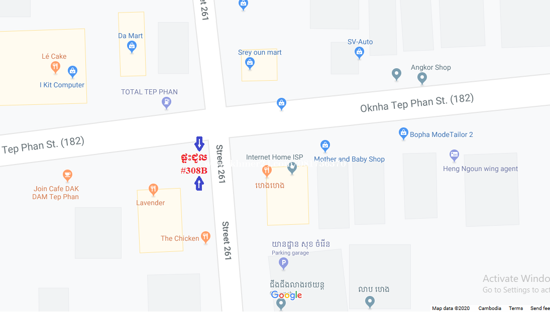 Phnom Penh , #308B, Street No. 261, Tuek Laak III Quarter, Tuol Kouk District, Phnom Penh Capital