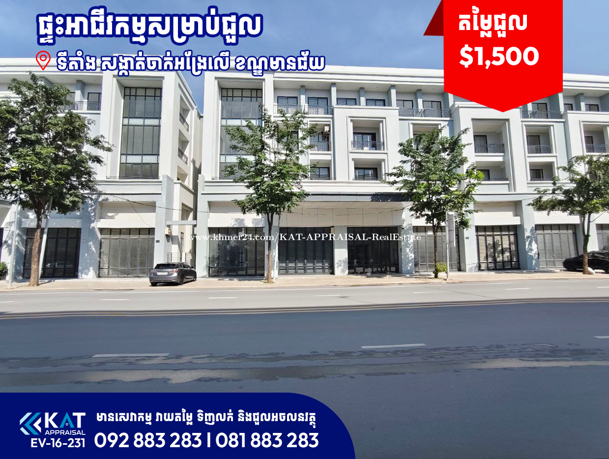 ផ្ទះអាជីវកម្មសម្រាប់ជួល | Home Office For Rent - ស្ថិតនៅបុរីជីបម៉ុងលែនម៉ាក /Borey Chipmong Landmark271 -តម្លៃជួល | Rent Price : $1,500/ខែ -ទំហំផ្ទះ | House Size: 5.5m x 17.5m -ទំហំដី | Land Size 5.5m x 25m -បន្ទប់គេង | Bedroom: 6 -បន្ទប់ទឹក | Bathroom: 6 -បន្ទប់ការិយាល័យ/ Office: 1 - ទីតាំង/ Location: សង្កាត់ចាក់អង្រែលើ ខណ្ឌមានជ័យ រាជធានីភ្នំពេញ។ Tel: 092883xxxClick To Call l 081883xxxClick To Call Telegram Chat : https://t.me/katappraisalsupport Telegram Channel : https://t.me/KAT_APPRAISAL