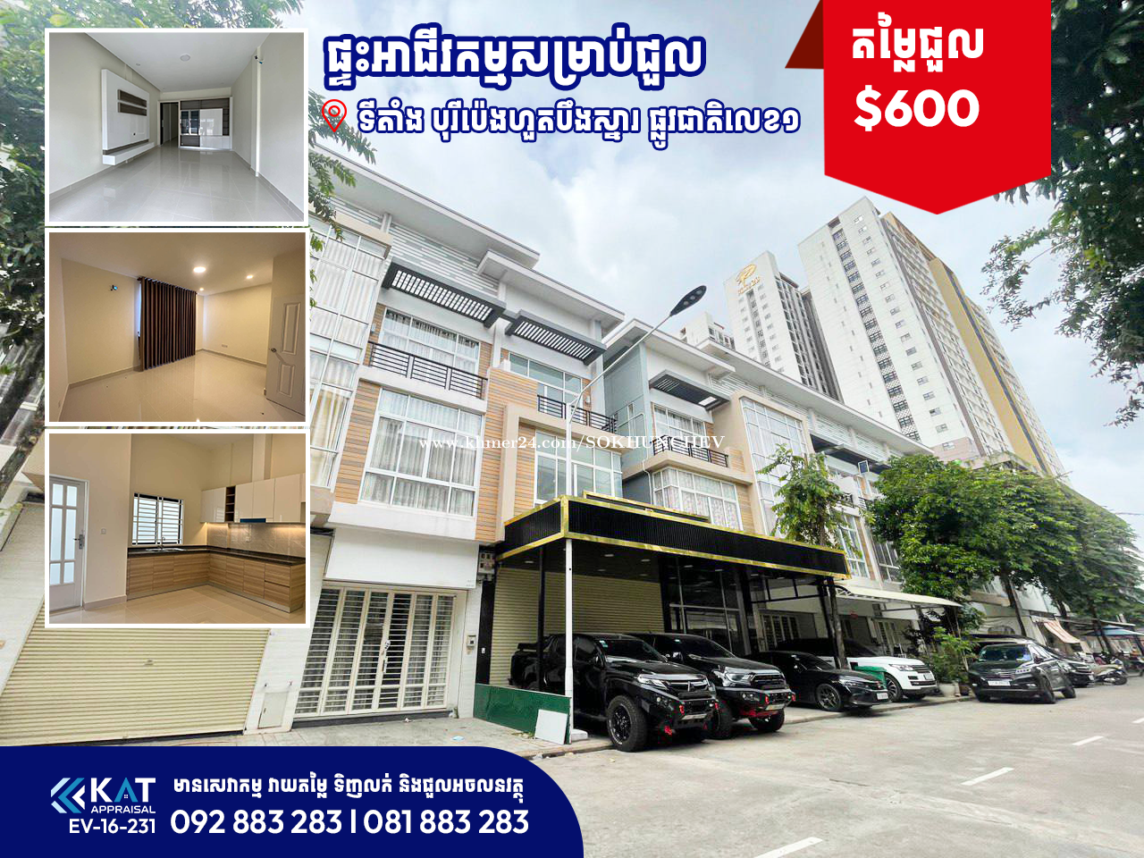ផ្ទះអាជីវកម្មសម្រាប់ជួល | Shophouse For Rent -សល់ដីចំហៀង - តម្លៃជួល | Rent Price: $600 - ទំហំផ្ទះ | House Size: 4.5m x 12m - ទំហំដី | Land Size: 5.75m x 19m - បន្ទប់គេង | Bedroom: 04 - បន្ទប់ទឹក | Bathroom: 05 -ទីតាំង/ Location: បុរីប៉េហួតបឹងស្នោរ, សង្កាត់និរោធន៏ ខណ្ឌច្បារអំពៅ, រាជធានីភ្នំពេញ ។ Tel: 092883xxxClick To Call l 081883xxxClick To Call Telegram Chat : https://t.me/katappraisalsupport Telegram Channel : https://t.me/KAT_APPRAISAL