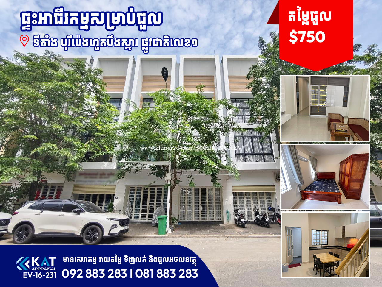 ផ្ទះអាជីវកម្មសម្រាប់ជួល | Shophouse For Rent - តម្លៃជួល | Rent Price: $750 - ទំហំផ្ទះ | House Size: 4.2m x 12m - ទំហំដី | Land Size: 4.2m x 19m - បន្ទប់គេង | Bedroom: 4 - បន្ទប់ទឹក | Bathroom: 5 - កំពស់ 3ជាន់ E0E1E2 - សម្ភារៈពេញ | Fully Furnished - ទីតាំង/ Location: បុរីប៉េហួតបឹងស្នោ សង្កាត់វាលស្បូវ ខណ្ឌច្បារអំពៅ រាជធានីភ្នំពេញ។ Tel: 092883xxxClick To Call l 081883xxxClick To Call Telegram Chat : https://t.me/katappraisalsupport Telegram Channel : https://t.me/KAT_APPRAISAL