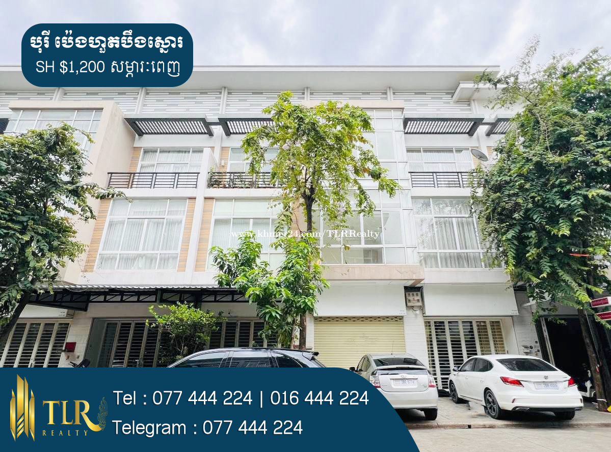 🏡ផ្ទះអាជីវកម្មសម្រាប់ជួល | Shophouse for Rent 💲តម្លៃជួល | Price Rent : $1,200 - សម្ភារៈ | Furniture : Fully Furnished - ទំហំផ្ទះ | House size : 4.2m x 12m - ទំហំដី | Land size : 4.2m x 19m - បន្ទប់គេង | Bedroom : 4 - បន្ទប់ទឹក | Bathroom : 5 - ផ្ទះបាយ | Kitchen : 1 - បន្ទប់ទទួលភ្ញៀវ | Livingroom : 1 - ផ្ទះបែរទៅខាងត្បូង | Facing to South 📍ទីតាំងស្ថិតនៅក្នុង បុរីប៉េងហួតបឹងស្នោរ គម្រោង7 សង្កាត់និរោធ ខណ្ឌច្បារអំពៅ រាជធានីភ្នំពេញ | Location in Borey Peng Huoth Beoung Snor Phnom Penh. # អត្តលេខអាជ្ញាប័ណ្ណ : E-24-449 📞 Cellcard : 077444xxxClick To Call 📞 Smart : 016444xxxClick To Call 📞 Metfone : 066444xxxClick To Call 📱 Telegram : 077444xxxClick To Call 📱 Channel telegram : https://t.me/RithyTLR