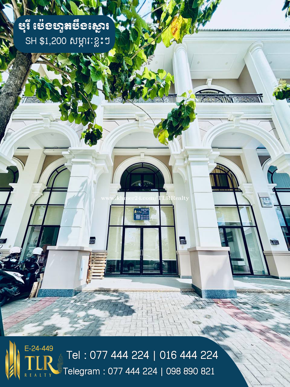 🏡ផ្ទះអាជីវកម្មសម្រាប់ជួល | Shophouse for Rent 💲តម្លៃជួល | Price Rent : $1,200 - សម្ភារៈ | Furniture : Some (ម៉ាស៊ីនត្រជាក់|វាំងនន|ម៉ាស៊ីនទឹកក្តៅ) - ទំហំផ្ទះ | House Size : 4.5m x 14m - ទំហំដី | Land Size : 4.5m x 23m - បន្ទប់គេង | Bedroom : 4 - បន្ទប់ទឹក | Bathroom : 5 - ផ្ទះបាយ | Kitchen : 1 - បន្ទប់ទទួលភ្ញៀវ | Livingroom : 1 - ផ្ទះបែរទៅខាងកើត | Facing to East 📍ទីតាំងស្ថិតនៅក្នុង បុរីប៉េងហួតបឹងស្នោរ គម្រោងអេកូសាន់រ៉ាយ សង្កាត់វាលស្បូវ ខណ្ឌច្បារអំពៅ រាជធានីភ្នំពេញ | Location in Borey Peng Houth Beoung Snor Phnom Penh. # អត្តលេខអាជ្ញាប័ណ្ណ : E-24-449 📞 Cellcard : 077444xxxClick To Call 📞 Smart : 016444xxxClick To Call 📞 Metfone : 066444xxxClick To Call 📱 Telegram : 077444xxxClick To Call 📱 Channel telegram : https://t.me/RithyTLR