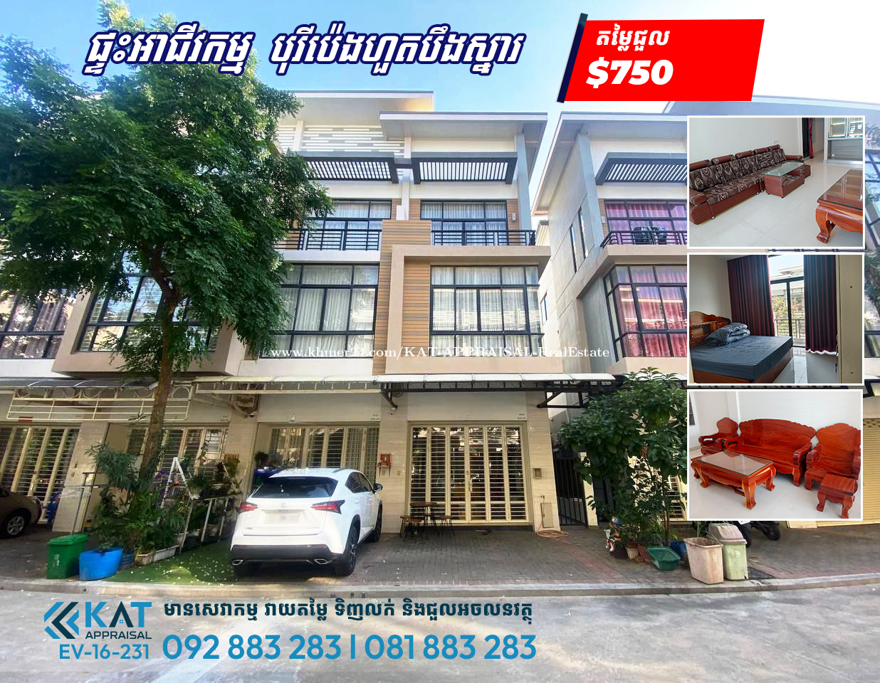 ផ្ទះអាជីវកម្មសម្រាប់ជួល | Shophouse For Rent -តំលៃជួល | Price: $750 | ខែ -ទំហំផ្ទះ | House Size: 4.2m X 12m -ទំហំដី | Land Size: 5.45m X 19m - បន្ទប់គេង | Bedroom: 4 - បន្ទប់ទឹក | Bathroom: 5 - មានសំភារៈសម្រាប់ប្រើប្រាស់ - ទីតាំង/ Loaction : សង្កាត់និរោធន៍, ខណ្ឌច្បារអំពៅ, ភ្នំពេញ ។ Tel: 092883xxxClick To Call l 081883xxxClick To Call Telegram Chat : https://t.me/katappraisalsupport Telegram Channel : https://t.me/KAT_APPRAISAL