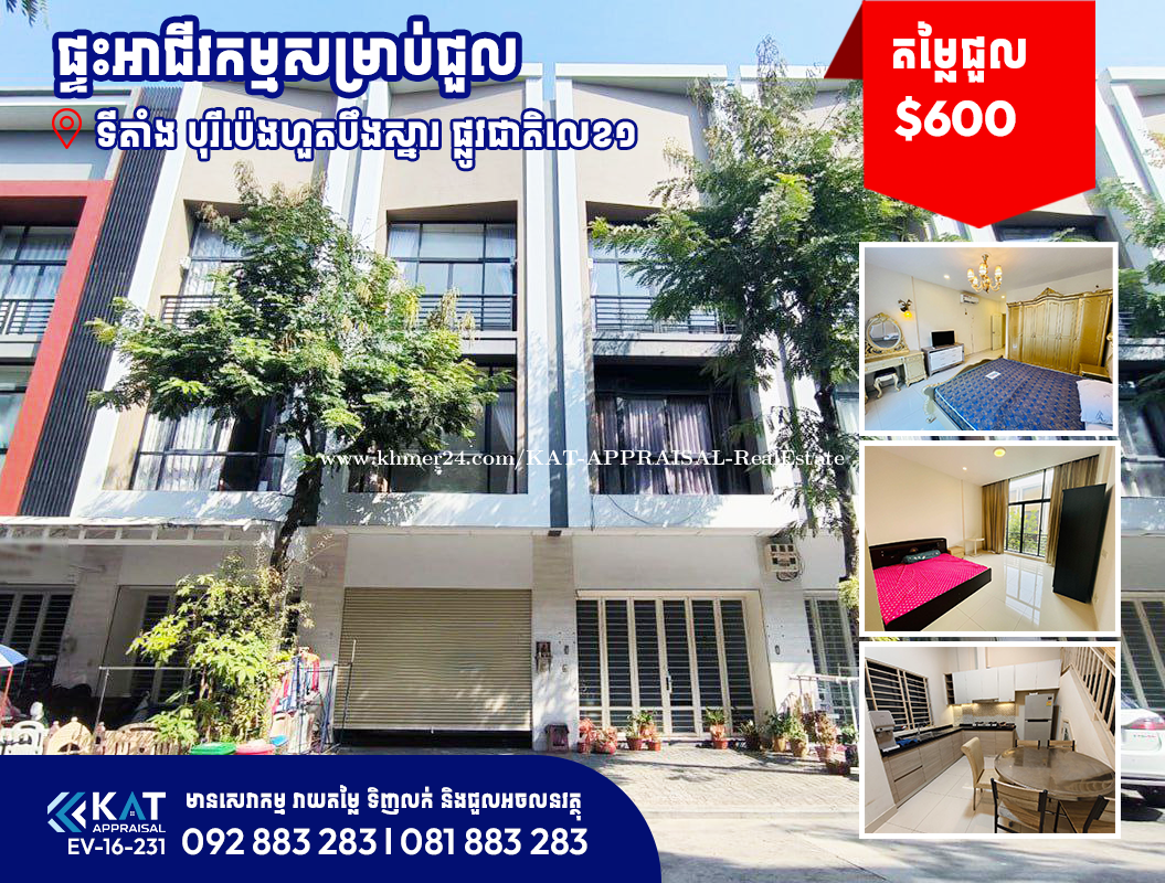 ផ្ទះអាជីវកម្មសម្រាប់ជួល | Shophouse For Rental - តម្លៃដាក់ជួល | Rent Price: $600 - ទំហំផ្ទះ | House Size: 4.2m x 10m - ទំហំដី | Land Size: 4.2m x 17m -បន្ទប់គេង | Bedroom: 4 -បន្ទប់ទឹក | Bathroom: 5 -បន្ទប់ទទួលភ្ញៀវ | Living room: 1 -ផ្ទះបាយ | Kitchen: 1 -កំពស់៖ 3 Floor -កុងត្រា 1ឆ្នាំ (កក់2 បង់1) -ទីតាំង/ Location: បុរីប៉េងហួតបឹងស្នោរ,សង្កាត់វាលស្បូវ, ខណ្ឌច្បារអំពៅ។ Tel: 092883xxxClick To Call l 081883xxxClick To Call Telegram Chat : https://t.me/katappraisalsupport Telegram Channel : https://t.me/KAT_APPRAISAL