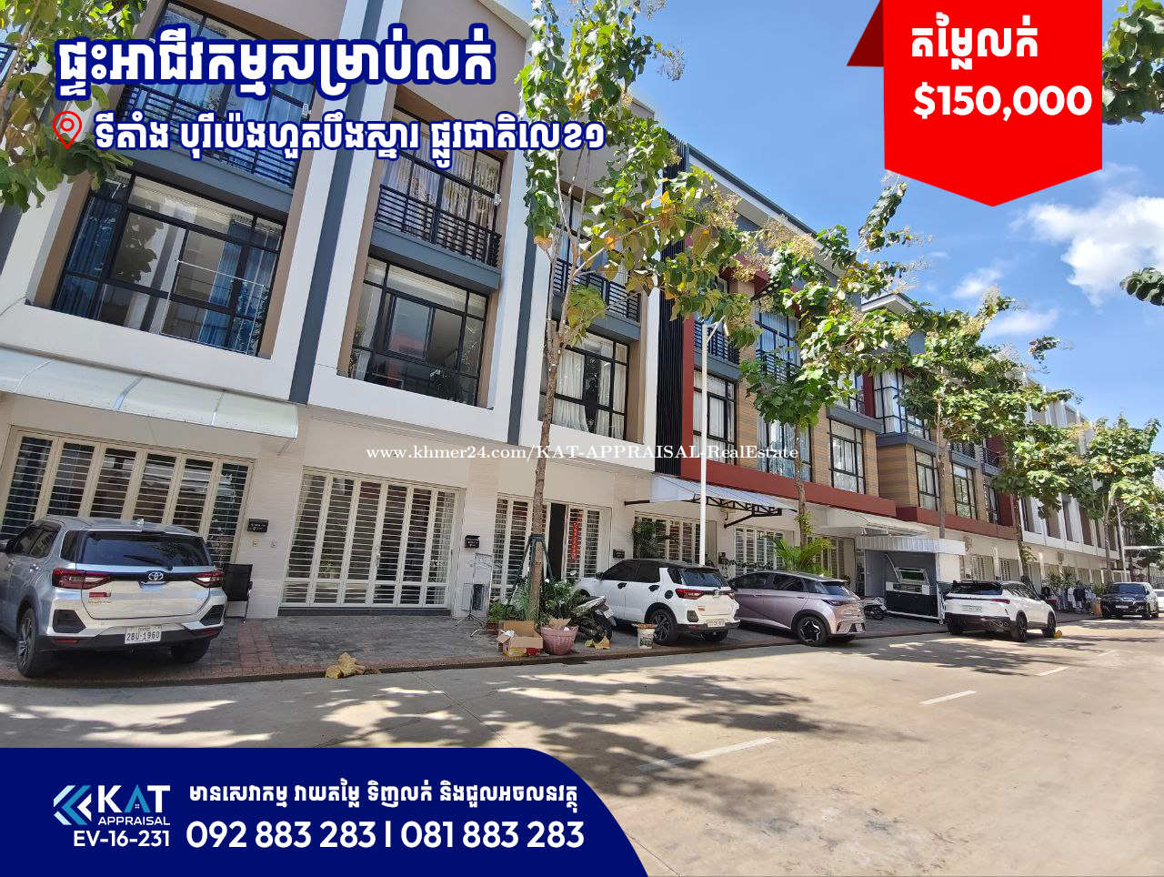 ផ្ទះអាជីវកម្មសម្រាប់លក់ | Shophouse For Sale , Eco Sunrise - តម្លៃលក់ | Sale Price: $150,000 - ទំហំដី | Land Size: 4.2m x 17.5m - ទំហំផ្ទះ | House Size: 4.2m x 10m - បន្ទប់គេង | Bedroom: 4 - បន្ទប់ទឹក | Bathroom: 5 -កំពស់៣ជាន់ | Height: 3 floors -បែរទិសកើត | To East -ឯកសារ៖ ត្រឹមបុរី -ទីតាំង/ Location: សង្កាត់វាលស្បូវ, ខណ្ឌច្បារអំពៅ, រាជធានីភ្នពេញ ។ Tel: 092883xxxClick To Call l 081883xxxClick To Call Telegram Chat : https://t.me/katappraisalsupport Telegram Channel : https://t.me/KAT_APPRAISAL