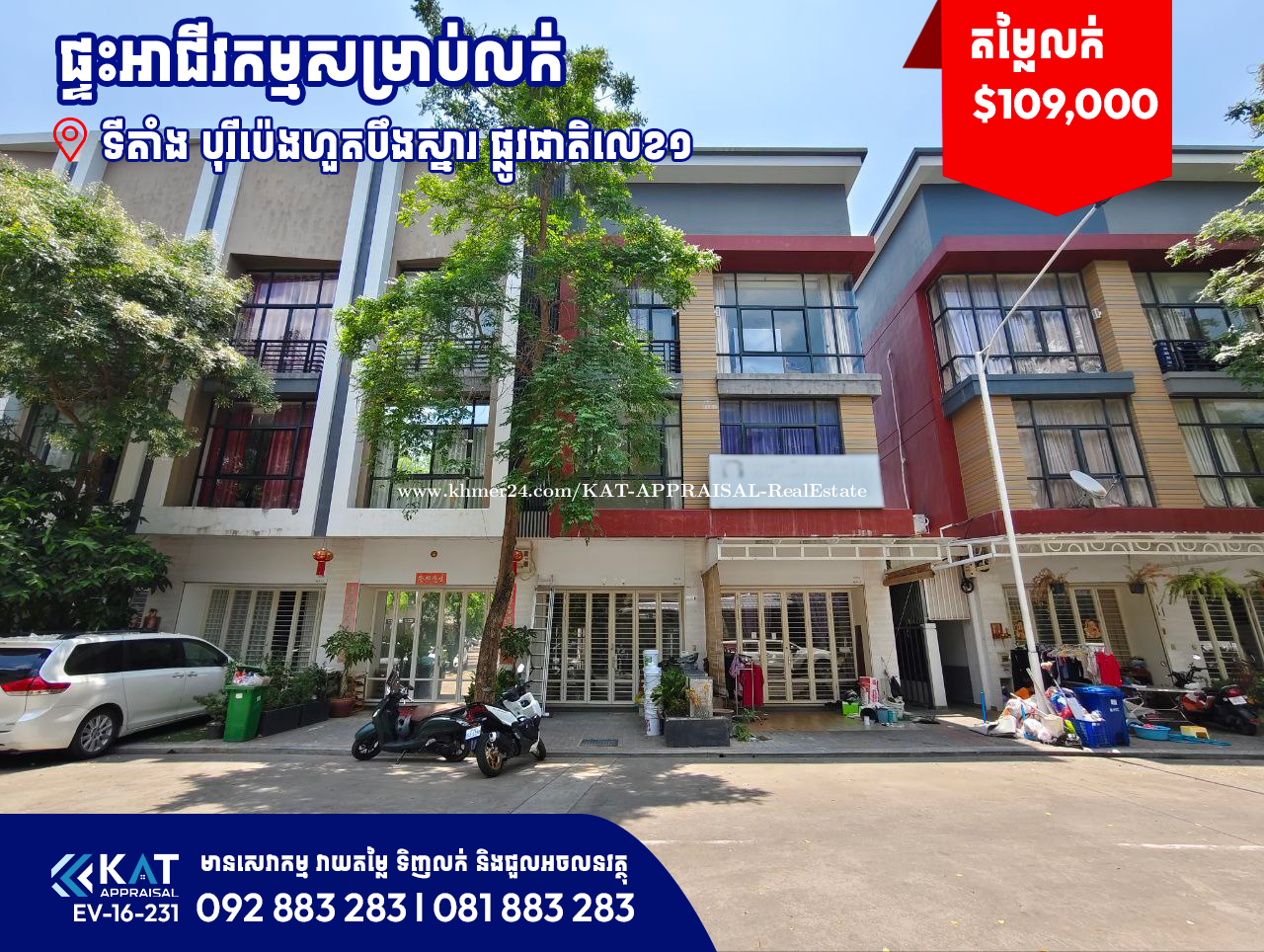 ផ្ទះអាជីវកម្មសម្រាប់លក់ | Shophouse For Sale - គម្រោងបុរីប៉េហួតបឹងស្នោ, Polaris 2 - តម្លៃលក់ | Sale Price: $109,000 - ទំហំផ្ទះ | House Size: 4.2m x 10m - ទំហំដី | Land Size: 4.2m x 17.5m - បន្ទប់គេង | Bedroom: 4 - បន្ទប់ទឹក | Bathroom: 5 -ឯកសារ| Doc: ប្លង់រឹង - បែរទិសលិច | Face to West - ទីតាំង/ Location: បុរីប៉េហួតបឹងស្នោ សង្កាត់វាលស្បូវ ខណ្ឌច្បារអំពៅ រាជធានីភ្នំពេញ។ Tel: 092883xxxClick To Call l 081883xxxClick To Call Telegram Chat : https://t.me/katappraisalsupport Telegram Channel : https://t.me/KAT_APPRAISAL