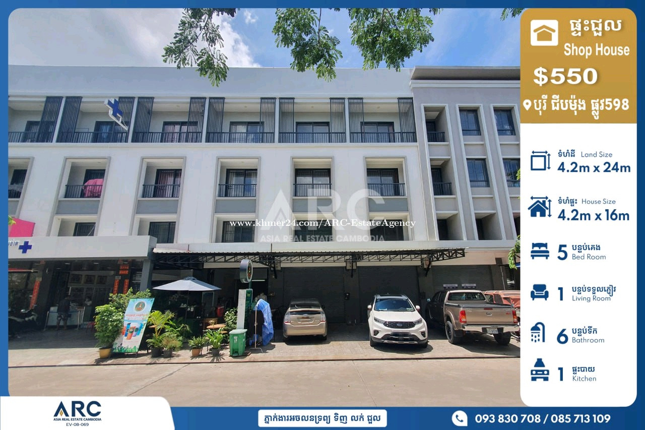 #Shop House For Rent at Borey Chip Mong Park Land 598 #ផ្ទះអាជីវកម្មសម្រាប់ជួលនៅក្នុងបុរី ជីបម៉ុង 598 ជិតផ្សារទំនេីបអុីអន២ 🔹 តម្លៃជួល / Rent Price $550 ( ចរចាបាន ) 🔹 ទំហំផ្ទះ/ House size: 4.2m x 16m 🔹 ទំហំដី / land size: 4.2m x 24m 🔹 បន្ទប់គេង Bedroom: 05 បន្ទប់ទឹក Bathroom: 06 #永旺2附近 出租价格:$550 美金/可谈 房间数量:05房 , 06卫 建筑面积:4.2米 X 16米 土地面积:4.2米 X 24米 សម្រាប់ពត៏មានលម្អិតសូមទំនាក់ទំនងមកក្រុមការងារ 085713xxxClick To Call / 093830xxxClick To Call / 0978899xxxClick To Call Chat to Telegram Agent https://t.me/sonsela14 Channel Telegram https://t.me/ARCKhanResseykeo 👉 អាជ្ញាប័ណ្ណ៖ EV-08-069
