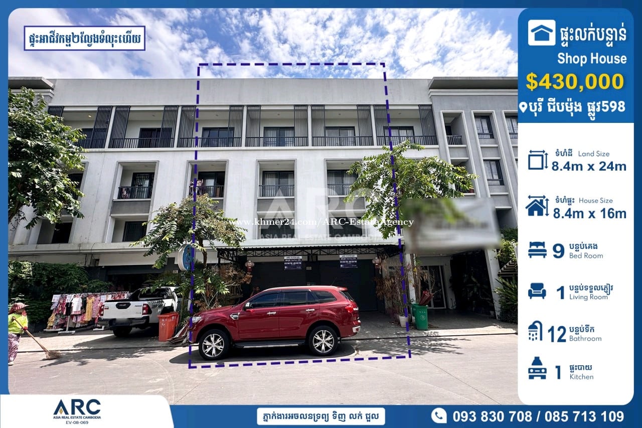 #Shop House For Sale at Borey Chip Mong Park Land 598 #ផ្ទះអាជីវកម្ម២ល្វែងដាក់លក់បន្ទាន់នៅក្នុងបុរី ជីបម៉ុង 598 ជិតផ្សារអុីអន២ 🔹 តម្លៃលក់ក្រោមទីផ្សារ : $430,000 (ចរចាម្ចាស់ផ្ទាល់) 🔹 កាត់ឈ្មោះប្លង់រឹងជូន 🔹 ទំហំដី : 8.4m x 24m 🔹 ទំហំផ្ទះ : 8.4m x 16m 🔹 បន្ទប់គេង : 09 បន្ទប់ទឹក : 12 📍ទីតាំងត្រឹមតែ07នាទីពីផ្សារទំនើប AEON2 Makro សង្កាត់ច្រាំងចំរេះទី២ ,ខណ្ឌឬស្សីកែវ ,រាជធានីភ្នំពេញ សម្រាប់ពត៏មានលម្អិតសូមទំនាក់ទំនងមកក្រុមការងារ 085713xxxClick To Call / 093830xxxClick To Call / 0978899xxxClick To Call Chat to Telegram Agent https://t.me/sonsela14 Channel Telegram https://t.me/ARCKhanResseykeo 👉 អាជ្ញាប័ណ្ណ៖ EV-08-069