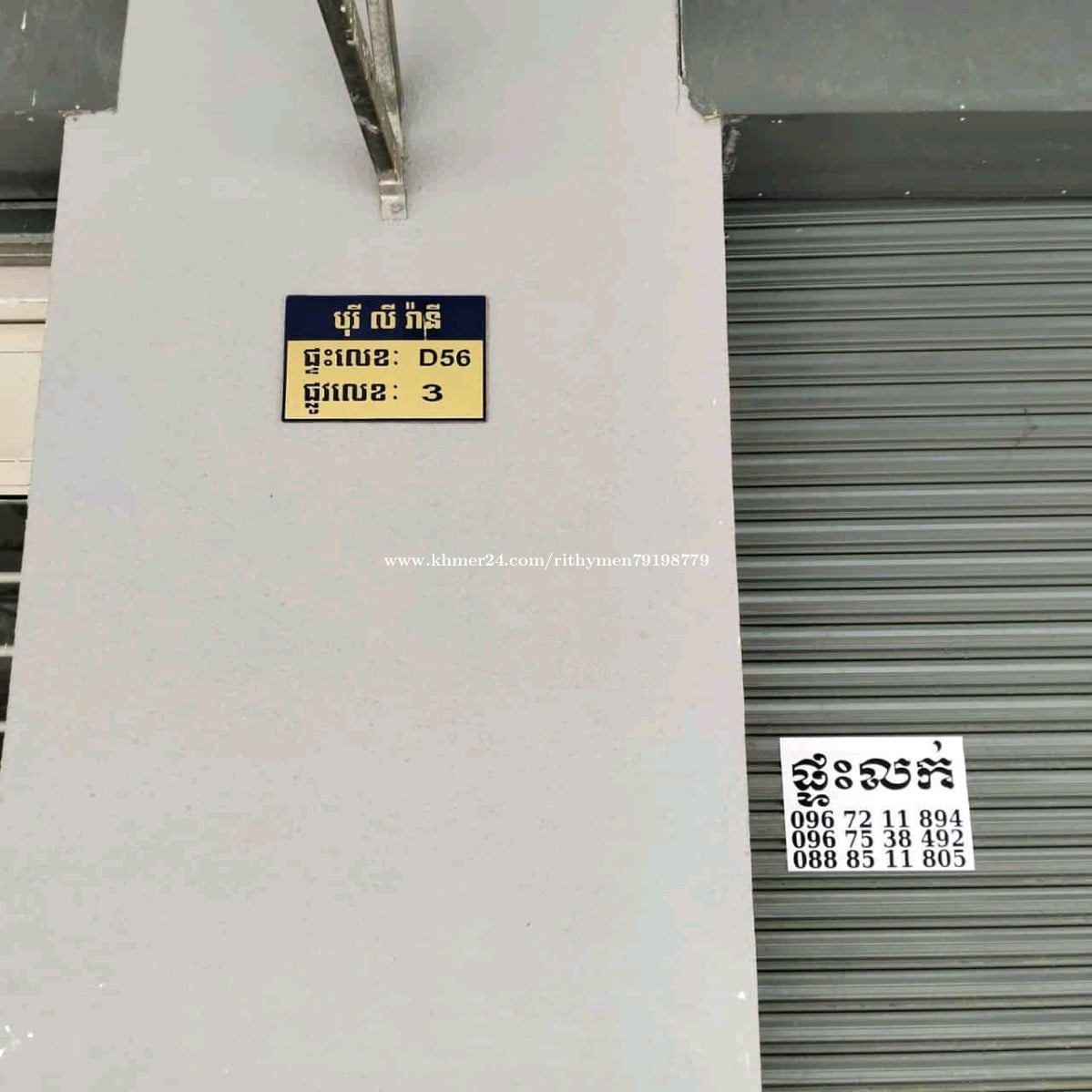 ផ្ទះ ៣ បន្ទប់គេង ៤ បន្ទប់ទឹក កម្ពស់ ២ ជាន់ នៅទល់មុខផ្សារ បុរីលី រ៉ានី