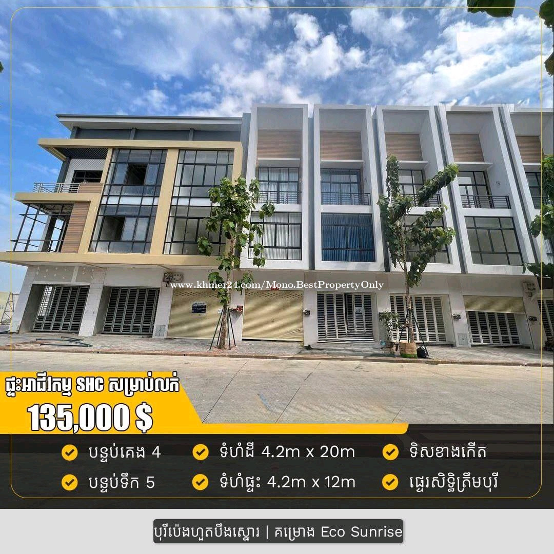 🏛 ផ្ទះអាជីវកម្ម SHC សម្រាប់លក់ 📍ទីតាំង បុរីប៉េងហួត បឹងស្នោ គម្រោង អេកូ សាន់រ៉ាយ 💁💁តម្លៃដាក់លក់: $ 135,000 ✅ប្លង់ត្រឹមបុរី ✅ទំហំដី: 4.2m x 20m ✅ទំហំផ្ទះ: 4.2m x 12m ✅បន្ទប់គេង: 4 - បន្ទប់ទឹក: 5 ✅ទិស កើត 🟰🟰🟰🟰🟰🟰🟰🟰 ☎️ 069430xxxClick To Call / 078430xxxClick To Call https://t.me/TrustMono1 ក្រុបបុរីប៉េងហួត តម្លៃល្អៗ❤️🫰 https://t.me/BestCondoMN