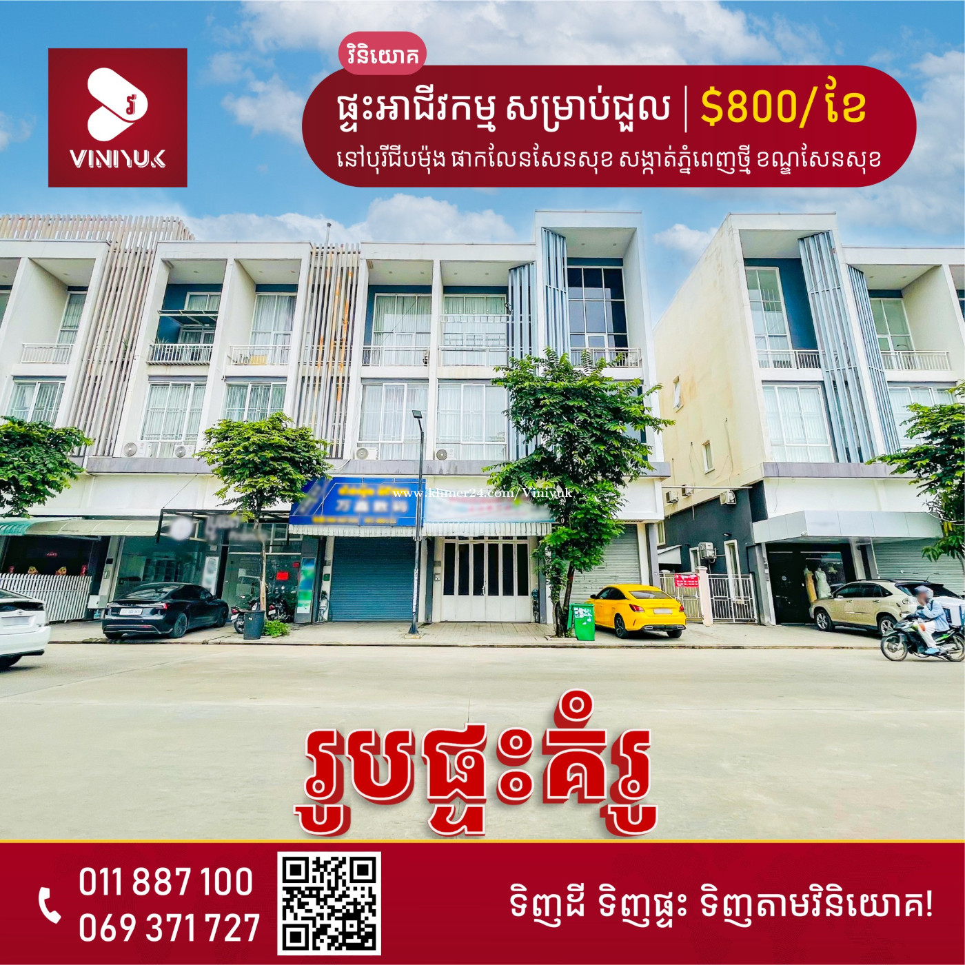 🏡ផ្ទះអាជីវកម្ម សម្រាប់ជួល!! 📍ទីតាំង ៖ នៅបុរីជីបម៉ុង ផាកលែនសែនសុខ (ផ្លូវ ម៉ុង ឫទ្ធី) សង្កាត់ភ្នំពេញថ្មី ខណ្ឌសែនសុខ រាជធានីភ្នំពេញ - តម្លៃជួល: $800/ខែ ចរចា - ទំហំដី: 4.2m x 24m - ទំហំផ្ទះ: 4.2m x 16m - បន្ទប់គេង5, បន្ទប់ទឹក6 - ផ្ទះមានសម្ភារៈ ម៉ាស៉ីនត្រជាក់ 3 គ្រឿង ទ្វាខាងមុខអូតូ - លេខអាជ្ញាប័ណ្ណ : E-22-404