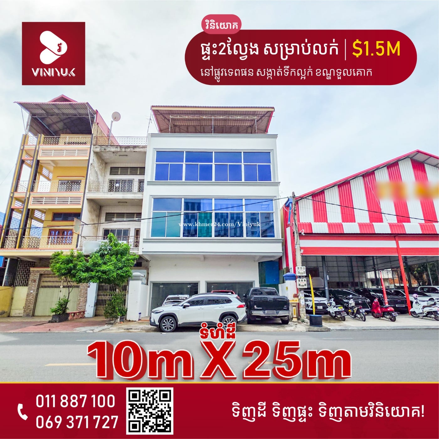 🏡ផ្ទះអាជីវកម្ម សម្រាប់លក់!! 📍ទីតាំង ៖ នៅផ្លូវទេពផន សង្កាត់ទឹកល្អក់ ខណ្ឌទួលគោក រាជធានីភ្នំពេញ - តម្លៃជួល : $3,000/ខែ ចរចា - តម្លៃលក់ : $1.5M ចរចា - ទំហំដី : 10m x 25m - ទំហំផ្ទះ : 8m x 21m - មានបន្ទប់ 16 - ប្លង់រឹង - លេខអាជ្ញាប័ណ្ណ : E-22-404