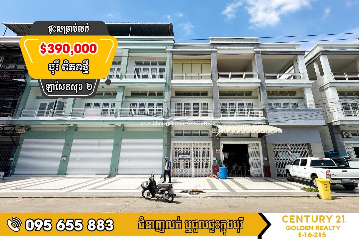 ផ្ទះអាជីវកម្ម សម្រាប់លក់ តម្លៃ 390,000$​ ចរចារបាន​ បូករួមទាំងការកាត់ប្លង់រឹងជូន 🚩ទីតាំងនៅបុរីពិភពថ្មី ឡាសែនសុខ​ អុីអន2 នៅលេីផ្លូវធំចំហៀងផ្សារទំនេីប​ អុីអន2 👉ទំហំផ្ទះ 4.1m x 16m | ទំហំដី: 4.1m x 23.5m 👉បន្ទប់គេង 4 | បន្ទប់ទឹក 5 💌សូមចុចលេីរូបភាពផ្ទះ ឫ Link ខាងក្រោមនេះដេីម្បីចូលរួមជាមួយគេហទំព័ររបស់ក្រុមហ៊ុន: 🔍Channel Telegram https://t.me/c21goldenrealty 📞សម្រាប់ព័ត៌មានលម្អិតសូមទំនាក់ទំនងមកកាន់ Telegram នឹង លេខទូរស័ព្ទ ខាងក្រោម 📩​ Telegram : t.me/c21goldenrealtyhotline Tel: 095655xxxClick To Call | 099655xxxClick To Call | 0236558xxxClick To Call