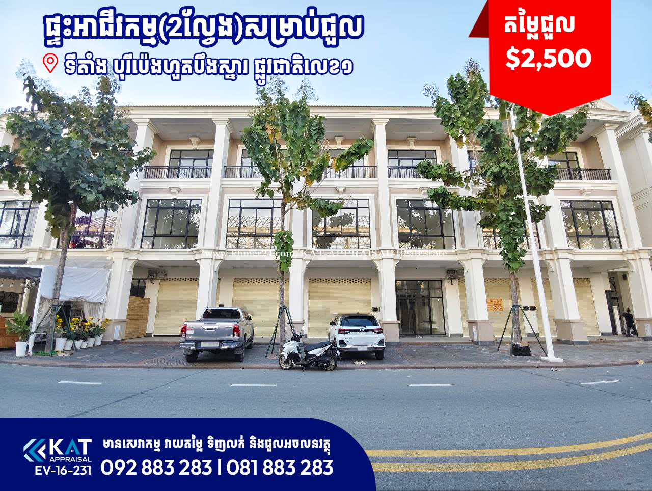 ផ្ទះអាជីវកម្ម(2ល្វែង)សម្រាប់ជួល | Shophouse 2 Flat For Rent - Borey Penghuoth boengSnor, Capital One - តម្លៃជួល | Rent Price: $2,500 - ទំហំដី | Land size: 10m x 25m - ទំហំ1ផ្ទះ | House size: 9m x 14m - បន្ទប់គេង | Bedroom: 8 - បន្ទប់ទឹក | Bedroom: 10 - កំពស់ ៣ជាន់ | 3 floor - ទីតាំង | Location: គម្រោងបុរីប៉េងហួតបឹងស្នោរ សង្កាត់វាលស្បូវ ខណ្ឌច្បារអំពៅ ភ្នំពេញ។ Tel: 092883xxxClick To Call l 081883xxxClick To Call Telegram Chat : https://t.me/katappraisalsupport Telegram Channel : https://t.me/KAT_APPRAISAL