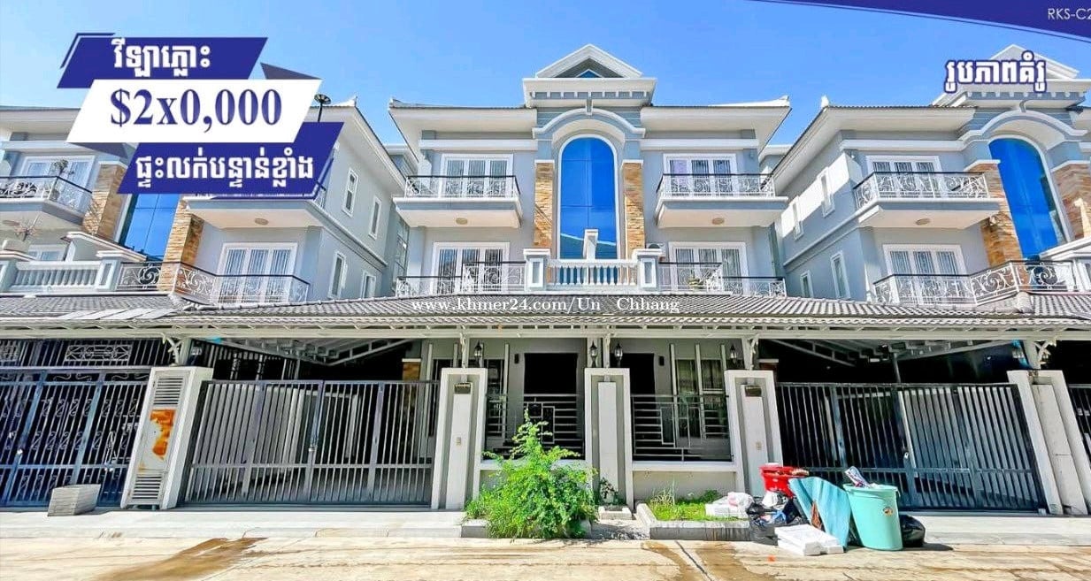 ផ្ទះលក់បន្ទាន់តម្លៃល្អ ទំហំដី 8mx 24m ទំហំផ្ទះ 6.2m x 12.6m មាន4បន្ទប់គេងធំទូលាយ និង5បន្ទប់ទឹក។ ទីតាំងល្អសម្រាប់រស់នៅ និងក្បែរ អ៊ីអន 2 ។ (House for Sales urgently with the land size 8mx 24m and house size is 6.2m x 12.6m) it is good location to live near Aeon 2 and the price is lower than market.
