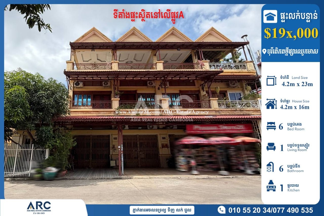 ផ្ទះអាជីវកម្មលក់បន្ទាន់ស្ថិតនៅលើផ្លូវAបុរីពិភពថ្មីផ្សារ ឈូកមាស SH Urgent Sale At Nw Chhuk Meas St A 🏷 តម្លៃ $199,000 (ចចារបាន) 🏷 តម្លៃក្រោមទីផ្សារ 🏷 ថែមជូនប្លង់រឹង 🏷 ទំហំដី 4.2m x 23m 🏷 ទំហំផ្ទះ 4.2m x 16m 🏷 បន្ទប់គេង 6 បន្ទប់ទឹក 6 🏷 ផ្ទះមានកំពស់ ៣ជាន់ 🚩 ទីតាំងផ្ទះលក់ស្ថិតនៅបុរីពិភពថ្មីផ្សារឈូកមាស ផ្លូវ២០១១ ខណ្ឌសែនសុខ រាជធានីភ្នំពេញ Chat to Agent/ 聊天到電報: 010552xxxClick To Call/077490xxxClick To Call Telegram https://t.me/ARCNhemBontheaSensok Channel Telegram https://t.me/ARCMrBonthea អាជ្ញាប័ណ្ណ៖ EV-08-069