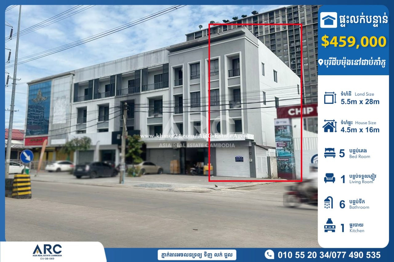 ផ្ទះអាជីវកម្មលក់បន្ទាន់ស្ថិតនៅបុរីជីបម៉ុងកាំកូ SH Urgent Sale At Borey Chip Mong Camko City 🏷 តម្លៃ $459,000 (ចចារបាន) 🏷 ទំហំដី 5.5m x 28m 🏷 ទំហំផ្ទះ 4.5m x 16m 🏷 បន្ទប់គេង 5 បន្ទប់ទឹក 6 🏷 វីឡានៅថ្មីមិនធ្លាប់ស្នាក់នៅ ⛳️ អាស័យដ្ឋានផ្ទះលក់បន្ទាន់ស្ថិតបុរីជីបម៉ុងកាំកូ និងនៅជិតផ្សារទំនើបអុីអន២ ខណ្ឌសែនសុខ រាជធានីភ្នំពេញ Chat to Agent/ 聊天到電報: 010552xxxClick To Call/077490xxxClick To Call Telegram https://t.me/ARCNhemBontheaSensok Channel Telegram https://t.me/ARCMrBonthea
