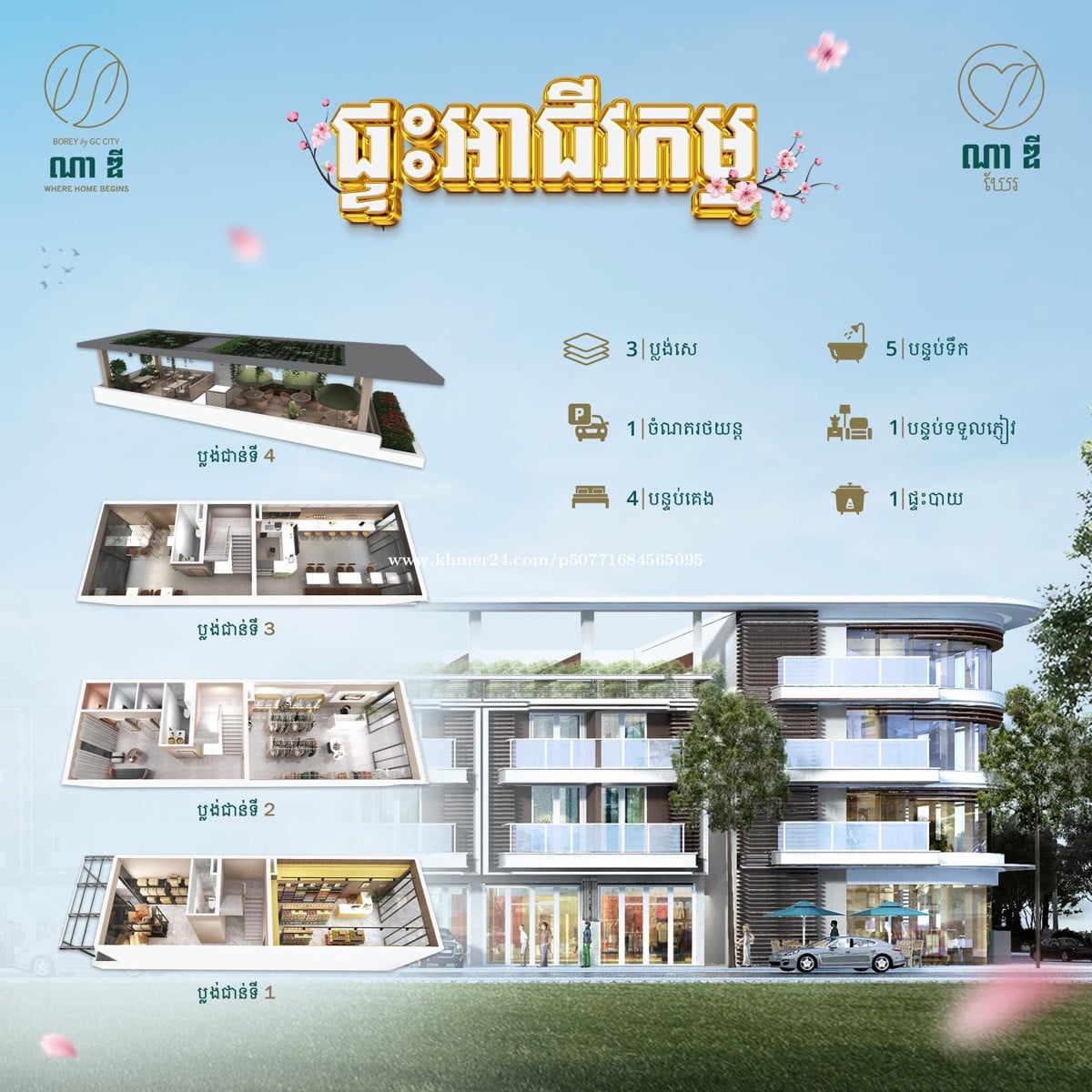 ផ្ទះអាជីវកម្មបុរីណាឌី 6A (ម្ចាស់ផ្ទះផ្ទាល់) ប្លង់សេចំនួន3 សន្លឹក ចំណតរថយន្ត1 បន្ទប់ទឹក5 បន្ទប់គេង 4 បន្ទប់ទទួលភ្ញៀវ 1 ការបង់ប្រាក់មានភាពងាយស្រួល វិធីបង់ប្រាក់អាចចរចាបាន
