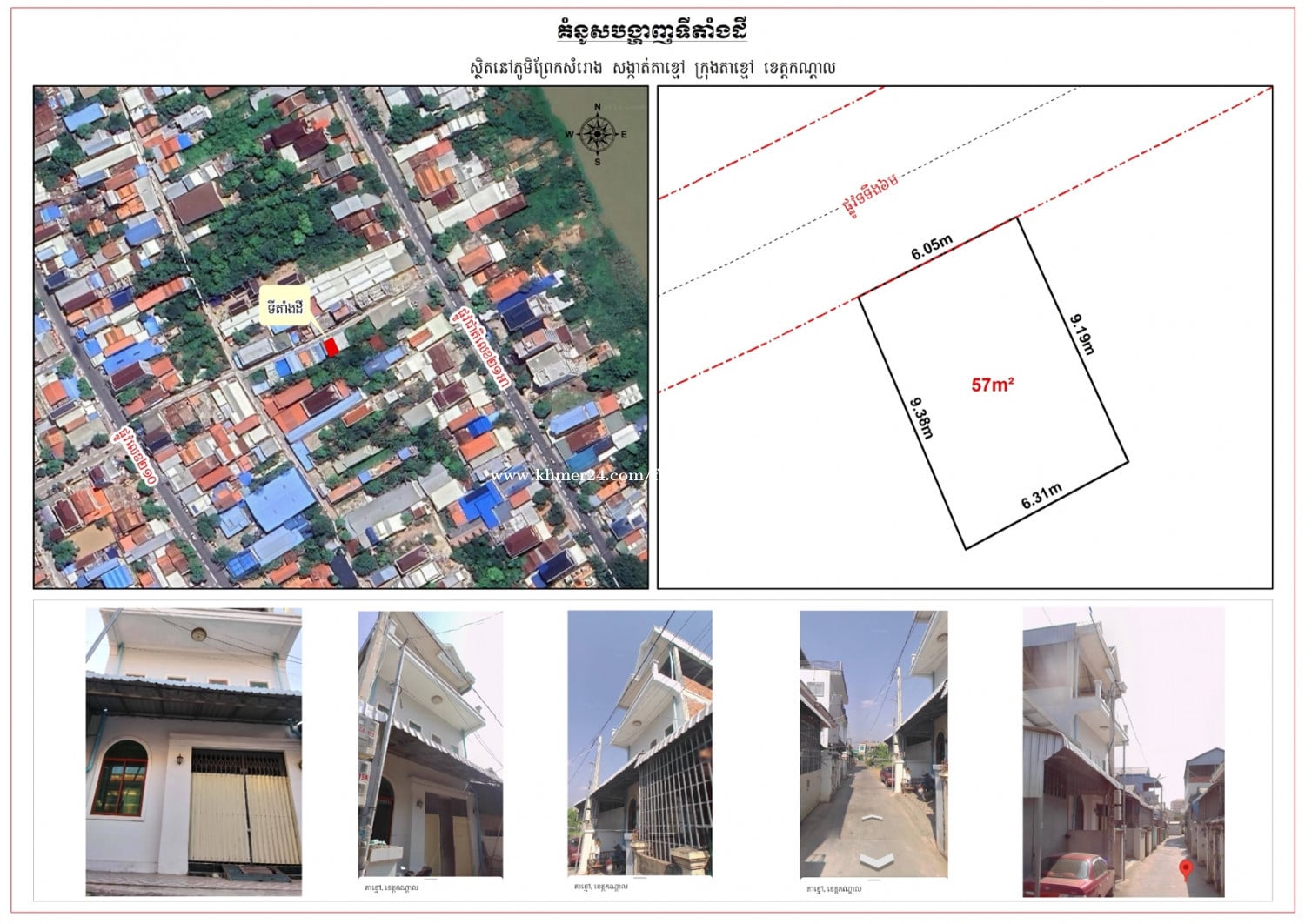 ទីតាំងដី និងផ្ទះលក់ 58000$ (ចចារ) ស្ថិតនៅសង្កាត់តាខ្មៅ ក្រុងតាខ្មៅ ទំហំផ្ទះ 6m x 10m ប្លង់សេ2សន្លឹកពេញ មាន2បន្ទប់គេង និង3បន្ទប់ទឹក