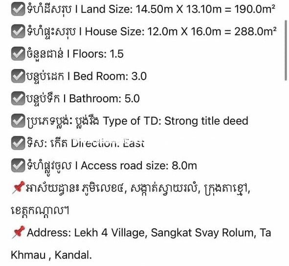 Contact Info: Please don't forget to mention that you found this ad on khmer24.com.