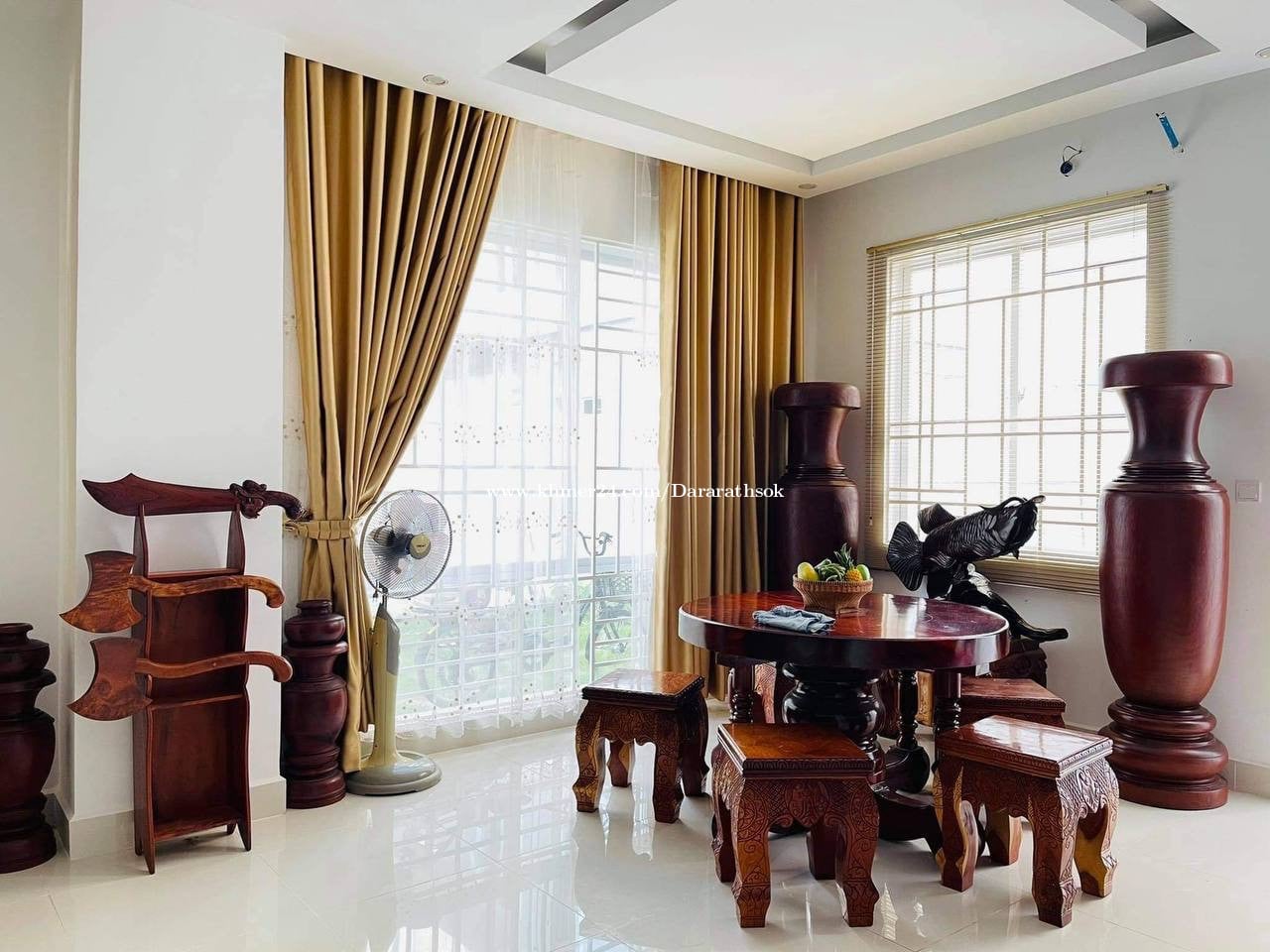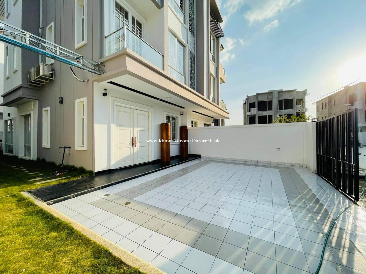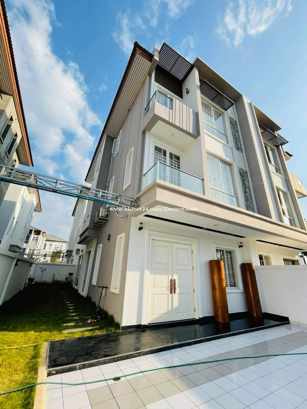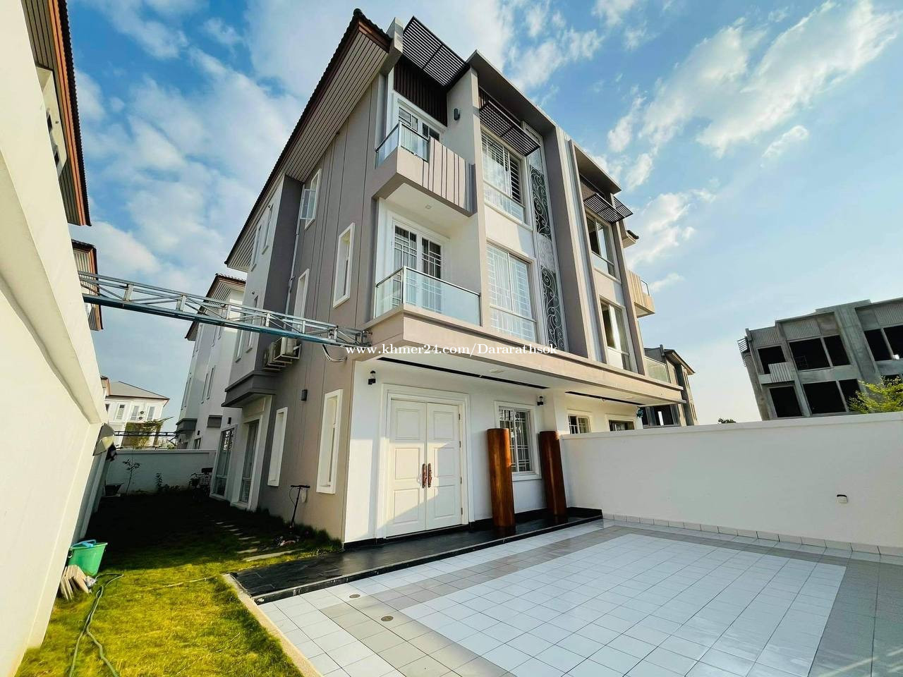 ផ្ទះ វីឡា ភ្លោះ លក់ ឬ ជួល មាន ៤ បន្ទប់គេង មានម៉ាស៊ីន ត្រជាក់ និង សំម្ភារៈ ប្រើប្រាស់ មួយ ចំនួន ៥ បន្ទប់ទឹក នៅ បុរី The Flora 6A