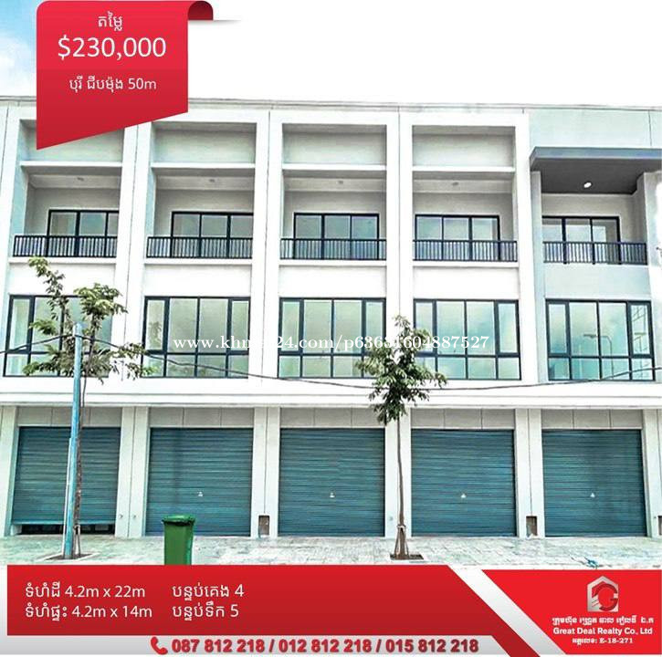 📣📣ផ្ទះអាជីវកម្មសម្រាប់លក់ 📍ទីតាំង: ស្ថិតក្នុង បុរីជីបម៉ុង ៥០ម 💲តម្លៃ: 230,000$ (ចរចា) ▶️ទំហំផ្ទះ: 4.2mx14m ▶️ទំហំដី 4.2mx22m ▶️បន្ទប់គេង4 បន្ទប់ទឹក5 ▶️ប្លង់រឹង ☎️សម្រាប់ព័ត៌មានបន្ថែម៖ 012812xxxClick To Call/ 015812xxxClick To Call/ 087812xxxClick To Call PropertyID 0247