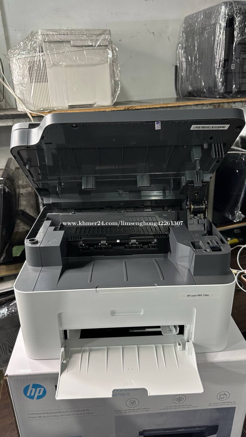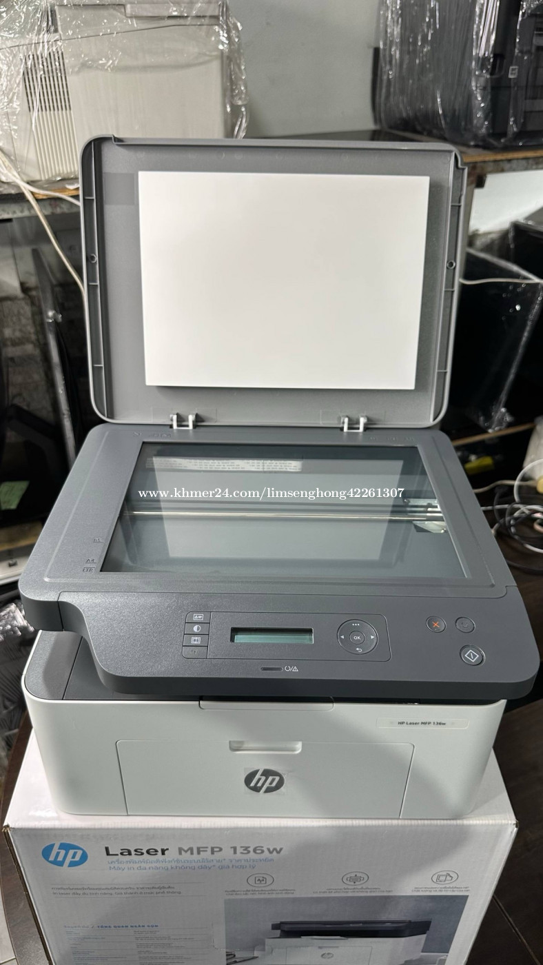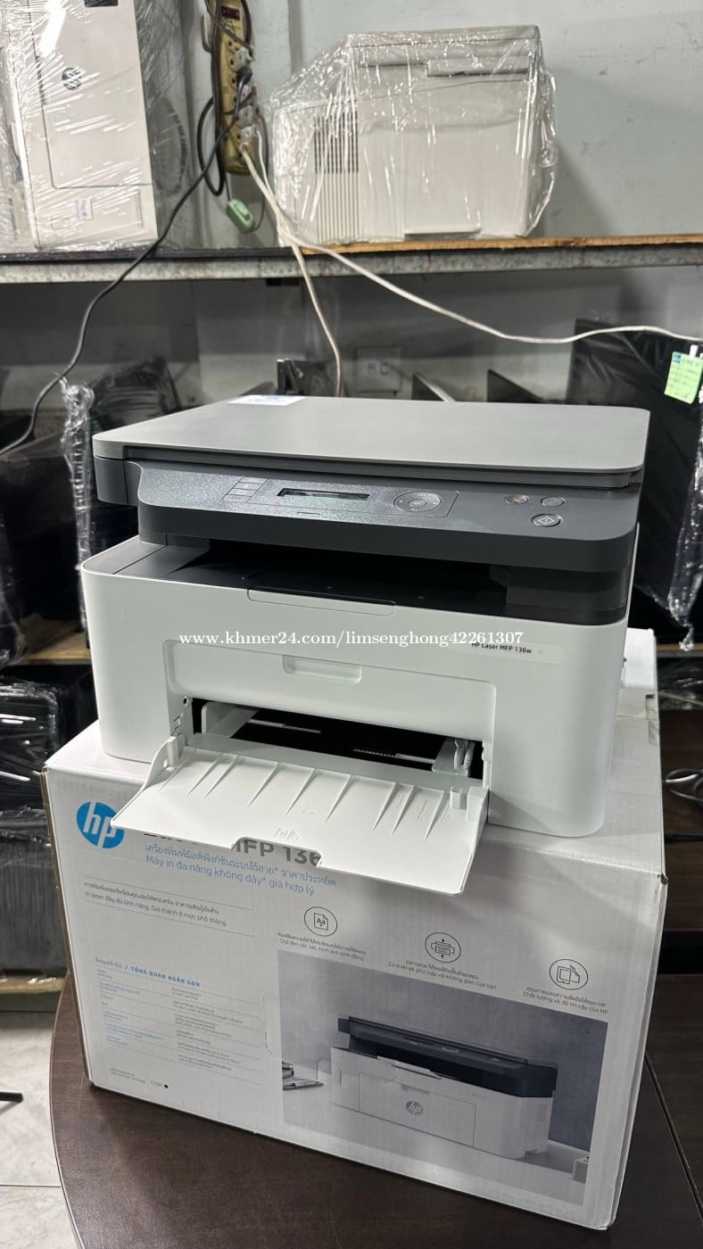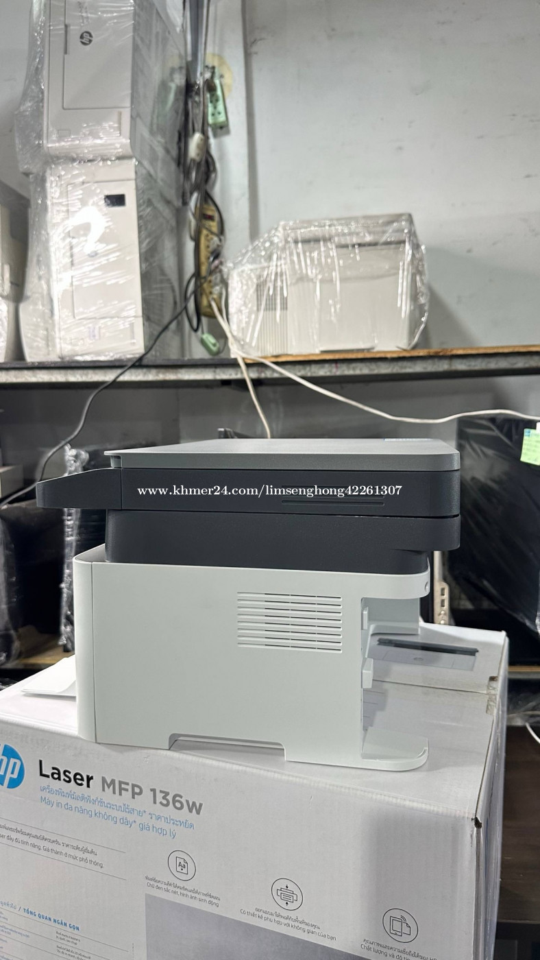 ព្រីនធ័រ ថ្មី Hp laser MFP 136W ប្រភេទ ព្រីន ស& ខ្មៅ មុខងារ ព្រីន ស្គេន កូពី wifi តម្លៃ 165$