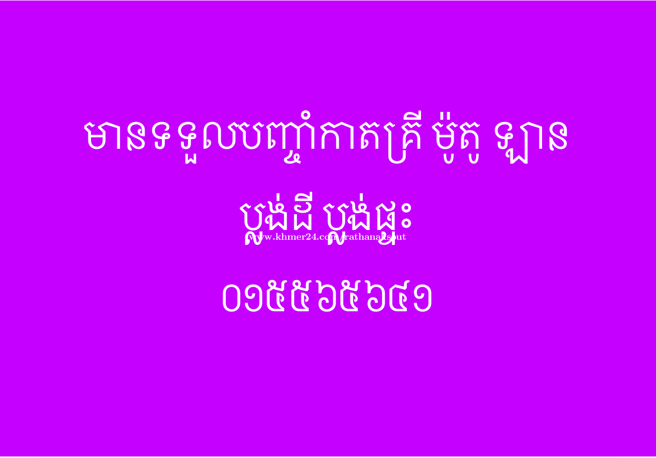 Contact Info: Please don't forget to mention that you found this ad on khmer24.com.